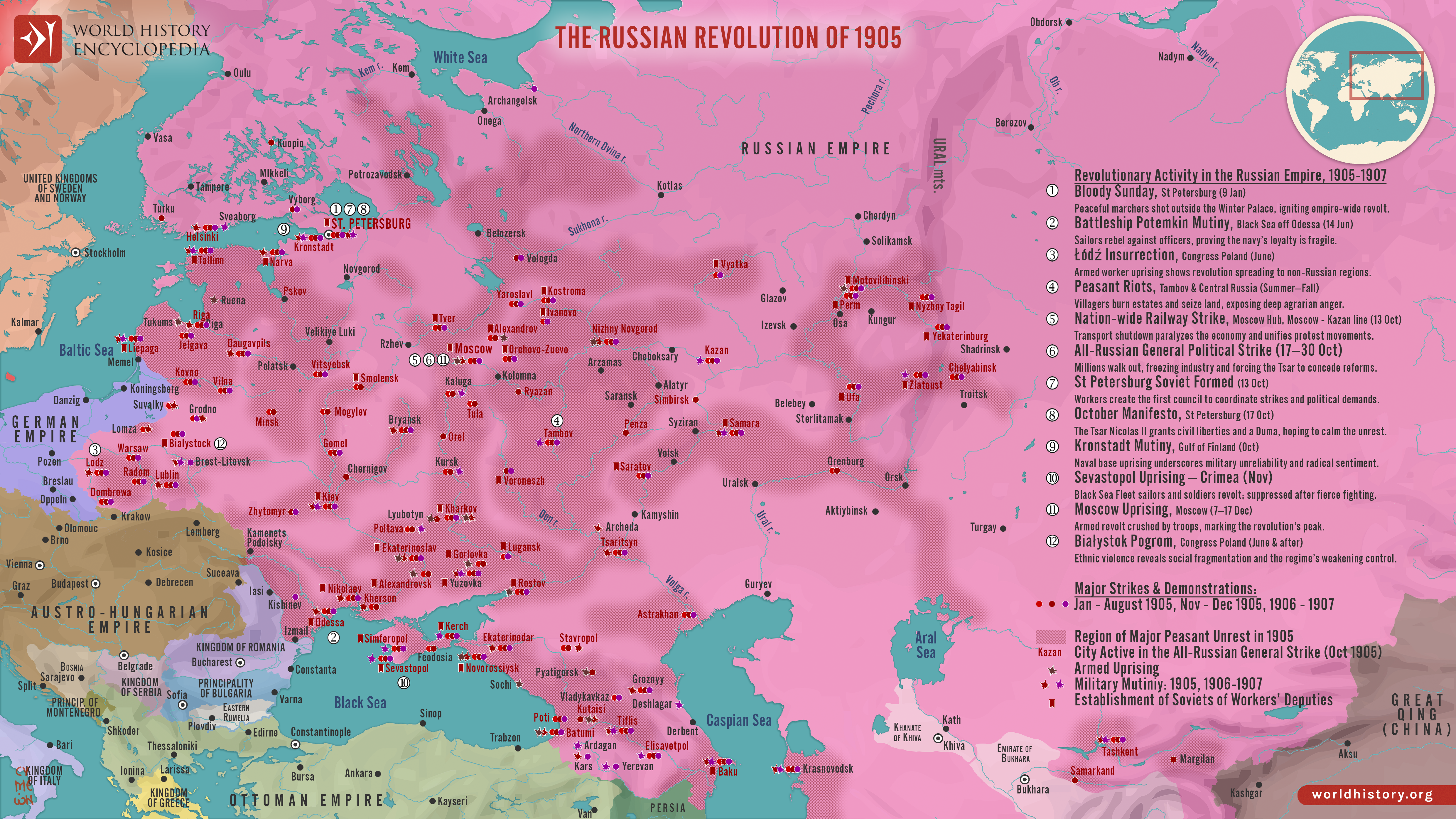 Netchev, S. (2025, June 27). Map of the Russian Revolution of 1905. World History Encyclopedia. https://www.worldhistory.org/image/20634/map-of-the-russian-revolution-of-1905/