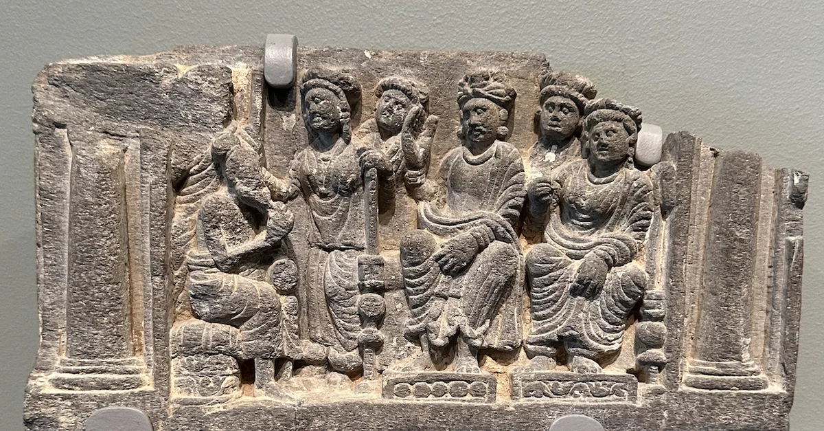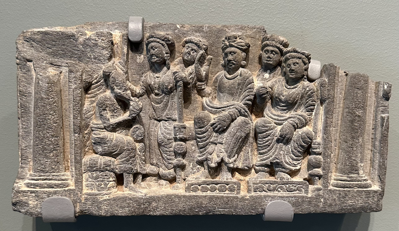 Queen Maya’s dream is explained, stone relief from the Gandhara region, modern-day Pakistan, circa 100-300 CE.
