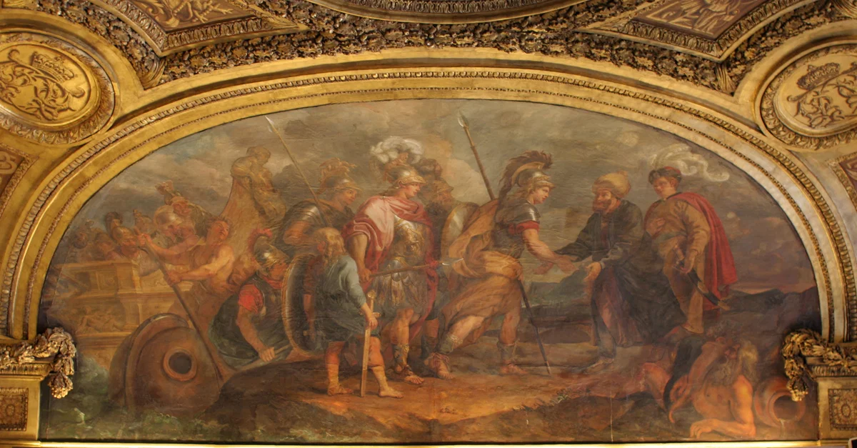 Jason and the Argonauts arriving at Colchis. The Argonautica tells the myth of their voyage to retrieve the Golden Fleece, painting by Charles de La Fosse, circa 1672.