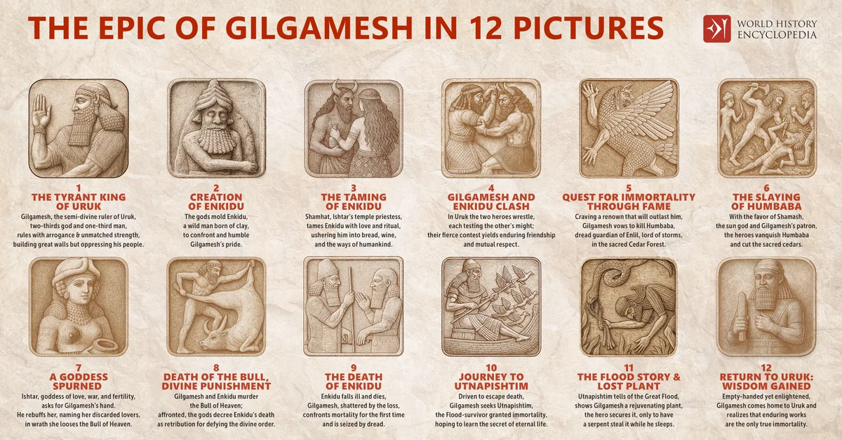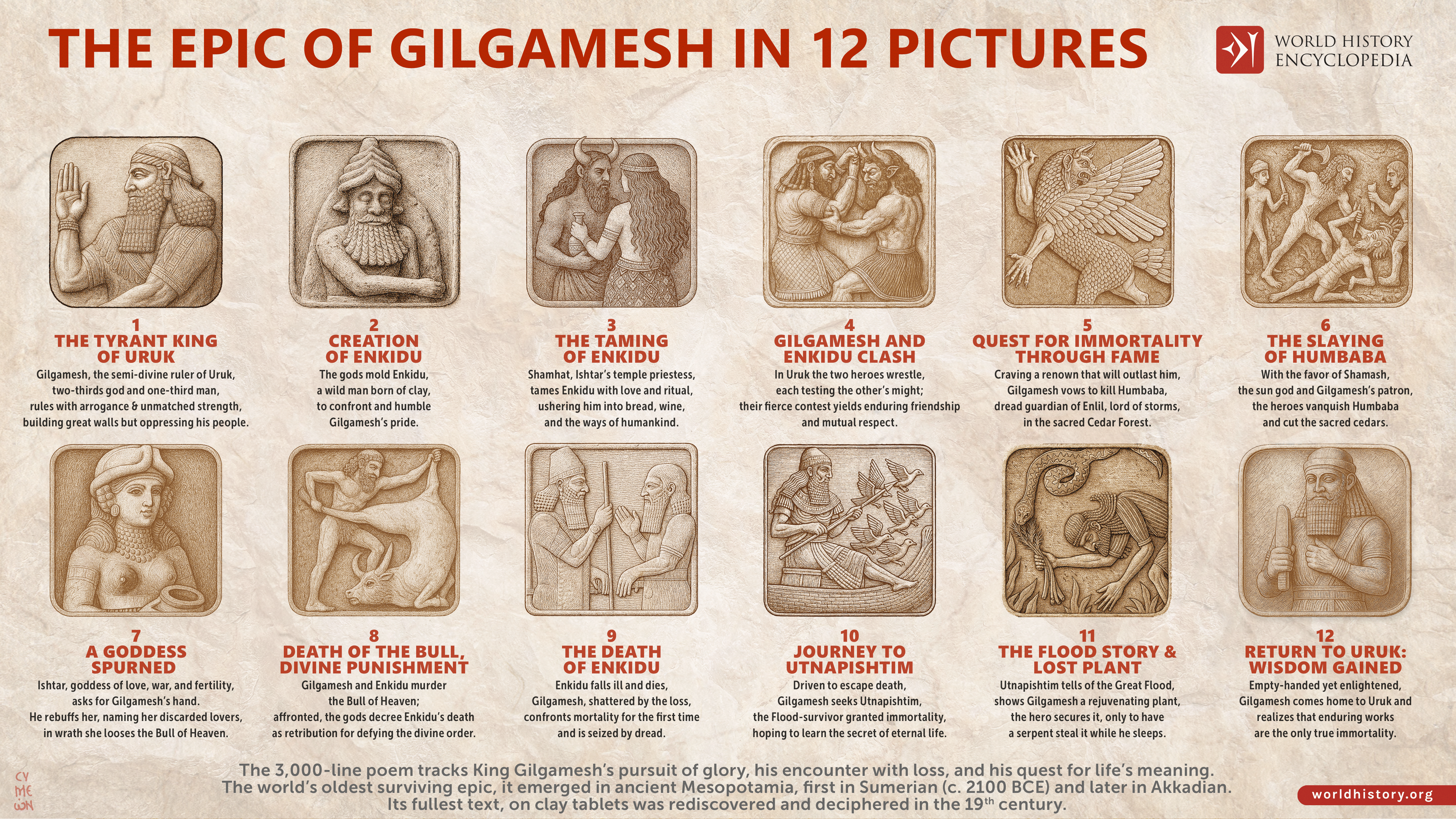 Netchev, Simeon. "The Epic of Gilgamesh in 12 Pictures." World History Encyclopedia, July 07, 2025. https://www.worldhistory.org/image/20646/the-epic-of-gilgamesh-in-12-pictures/.