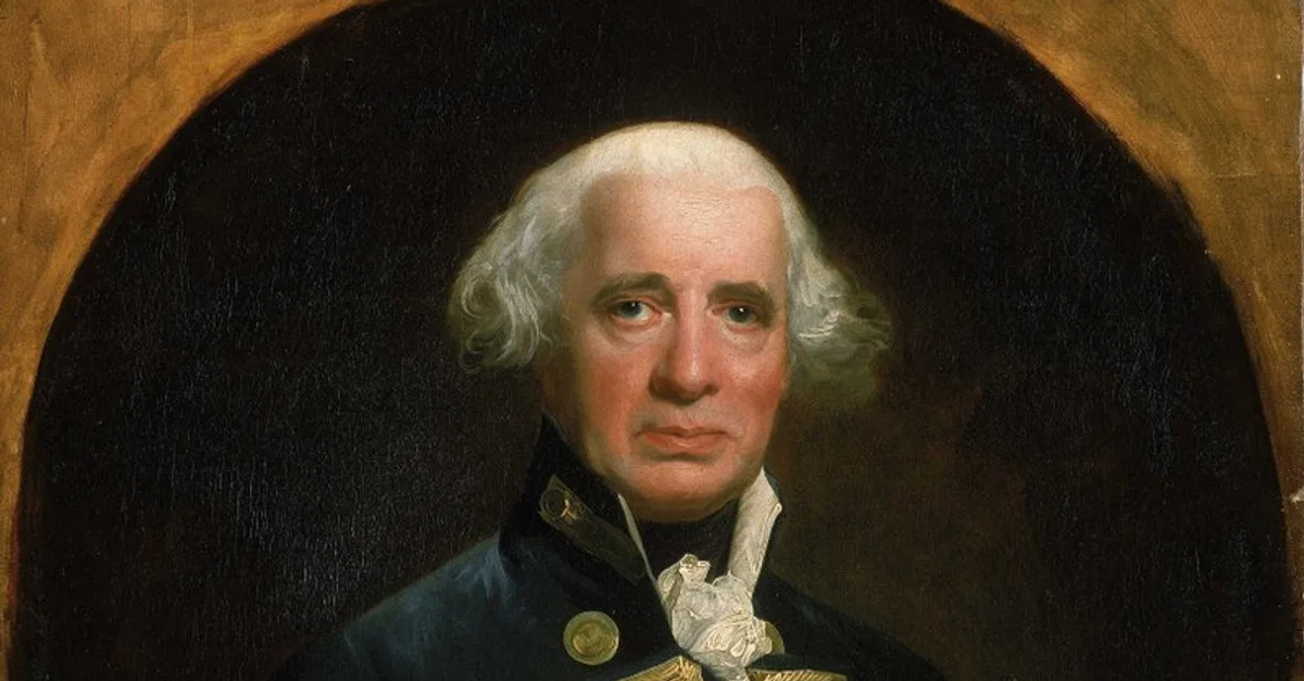 A 1794 painting of Admiral Richard Howe, 1st Earl Howe (1726-99), the famous British admiral who commanded the British Fleet during the Revolutionary War of 1776. Painting by John Singleton Copley. (Royal Museums Greenwich)