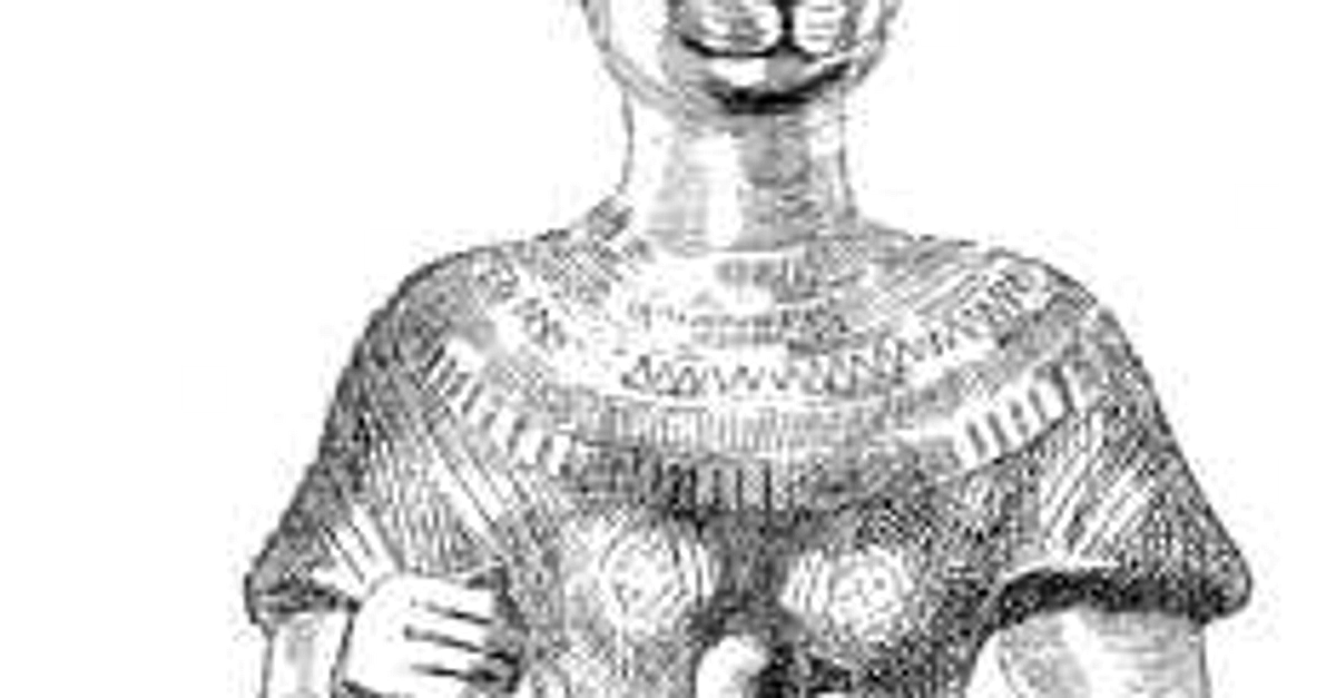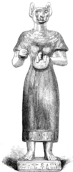 The goddess Bast. (From a bronze in the Louvre). From A History of Art in Ancient Egypt, Vol. I by Georges Perrot and Charles Chipiez (1883).