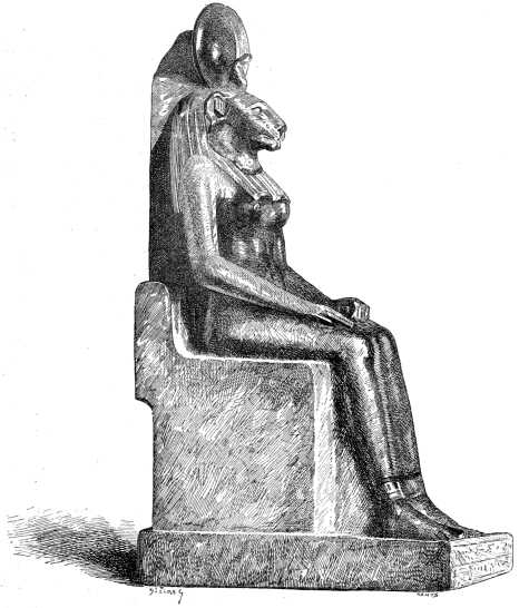 Sekhet. Louvre. (Granite. Height 0·50 metres.) From A History of Art in Ancient Egypt, Vol. I by Georges Perrot and Charles Chipiez (1883).