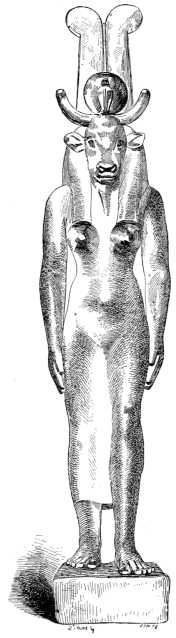 Isis-Hathor. Louvre. From A History of Art in Ancient Egypt, Vol. I by Georges Perrot and Charles Chipiez (1883).