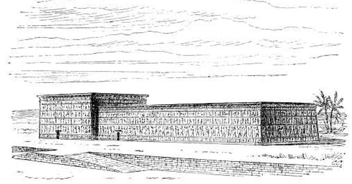 General appearance of an Egyptian Temple. From A History of Art in Ancient Egypt, Vol. I by Georges Perrot and Charles Chipiez (1883).