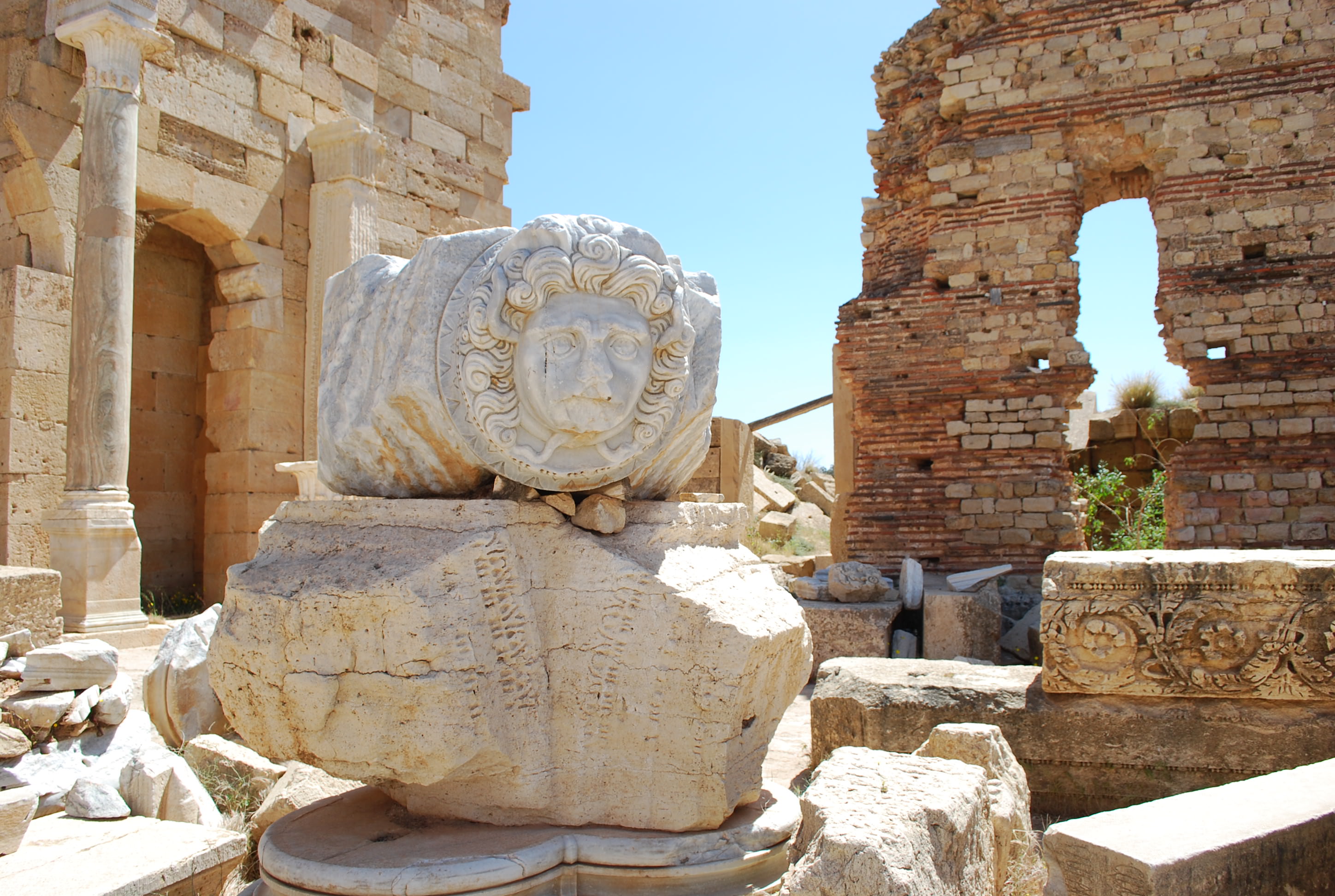 One of the heads of Gorgon from the new severan forum, Leptis Magna (Libya). 3rd century CE.