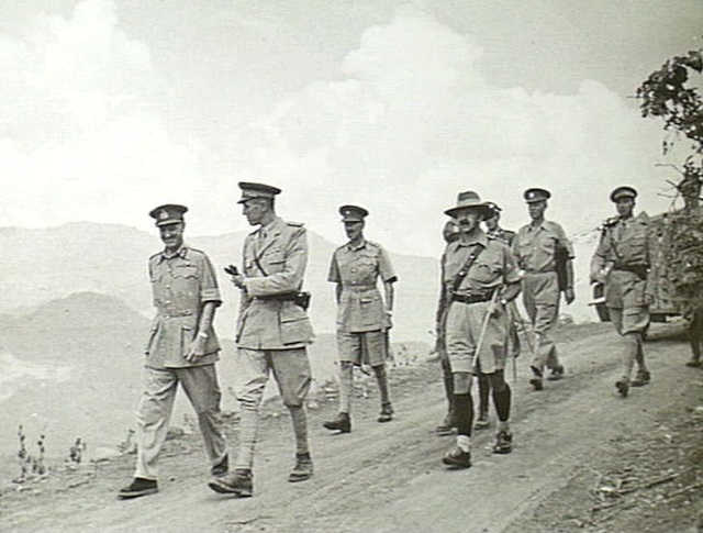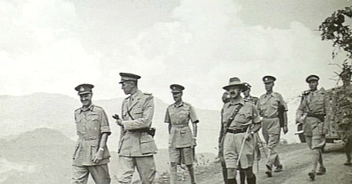 Amedeo Duke of Aosta (1898-1942), Viceroy of Ethiopia, with British General Mosley Mayne (1889-1955) and other British officers after the Italian surrender to the British troops at Amba Alagi. The Duke of Aosta was in charge of the Italian troops in the context of the East African campaign (1940-1941), which saw the British army and the Ethiopian resistance fight against the Italian colonies in the Horn of Africa. (Australian War Memorial)