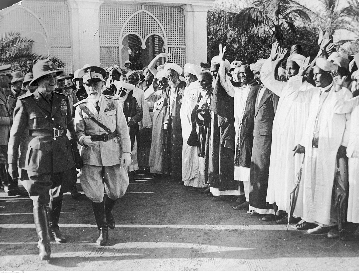 Meeting in Massawa of Emilio De Bono (1866-1944) and Pietro Badoglio (1871-1956) during the Italian-Abyssinian War. De Bono and Badoglio were commanding the military operations of the invasion of Ethiopia (1935). Emilio De Bono was the Italian commander in the first phase of the invasion of Ethiopia in 1935, but was replaced by Pietro Badoglio due to the slowdown of the advance.