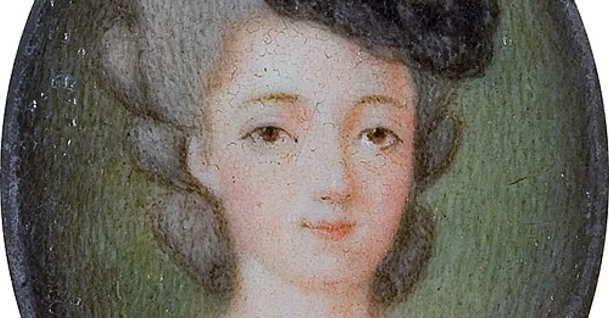 Miniature portrait of Adrienne de La Fayette, wife of the revolutionary leader Marquis de Lafayette. By an unknown painter, circa late 18th century.