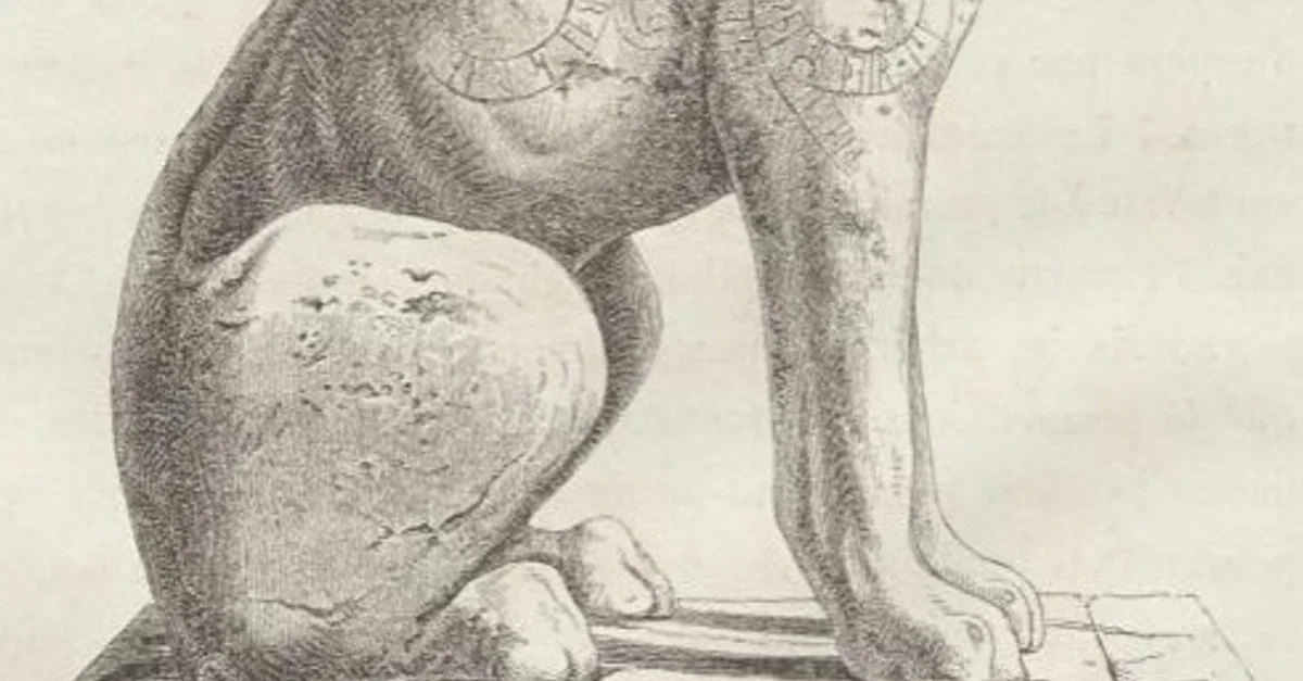The Marble Lion of Piraeus, book illustration by an unknown artist, included in Antiquités de l'Orient by Carl Christian Rafn, p. 54, Copenhagen, 1856.