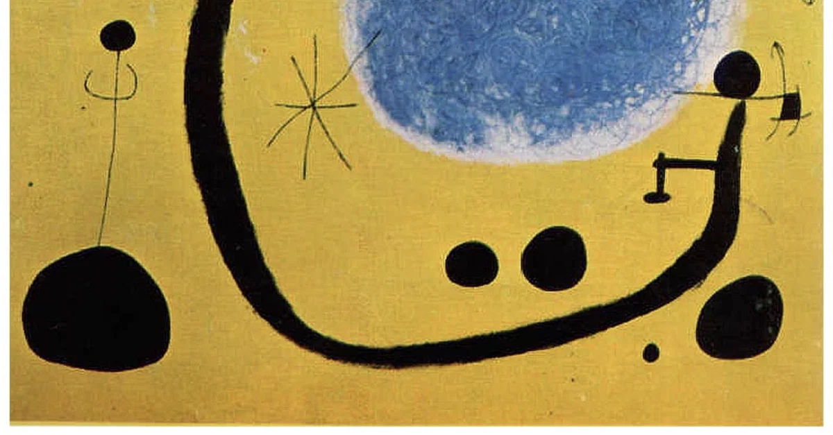 A 1967 oil-on-canvas panting, The Gold of the Azure by Joan Miró (1893-1983). The painting employs the grattage technique. (Joan Miró Foundation, Barcelona)