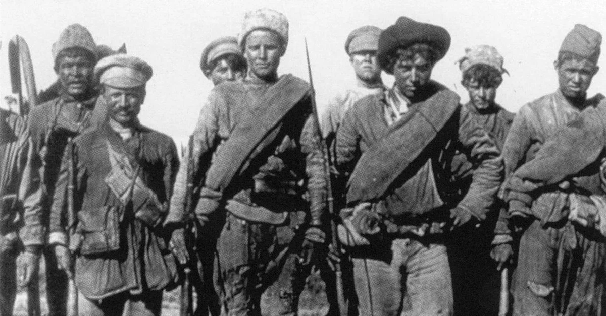 A 1919 photograph of a Kolchak unit of the White army which fought during the Russian Civil War (1918-22).