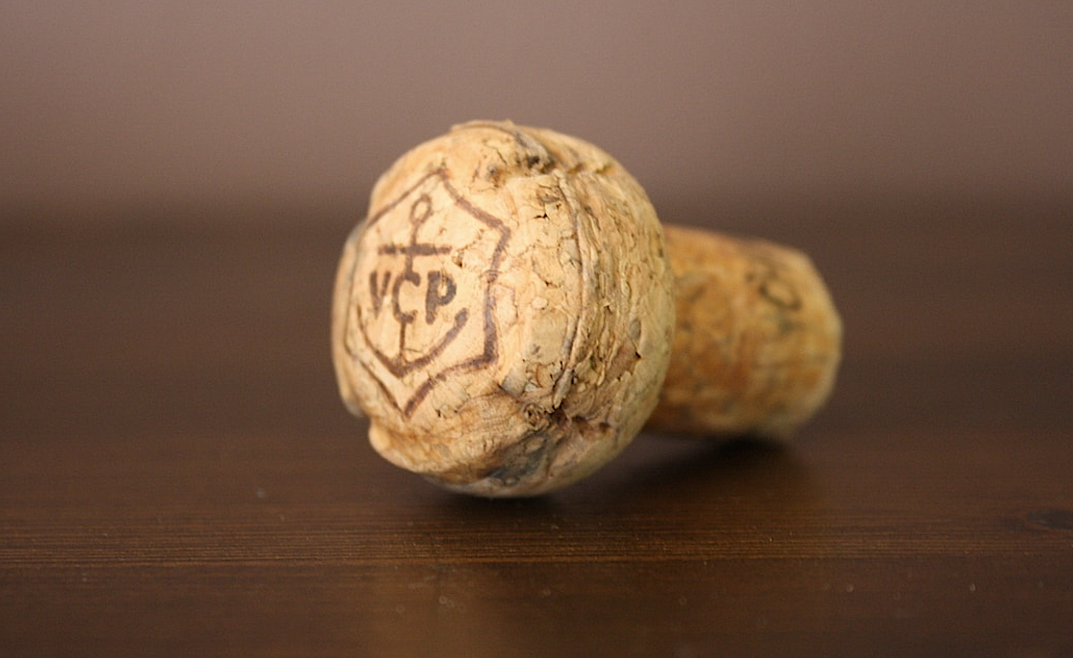 A champagne cork of Veuve Clicquot. The VCP logo was designed and first placed on corks by Madame Barbe-Nicole Clicquot-Ponsardin (1777-1866).