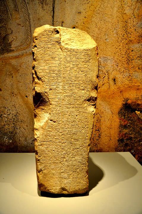 The stela of Iddi-Sin, King of Simurrum celebrates and commemorates the victories of this King against his enemies, mostly tribes of West Iran. The stela is carved with 108 lines of cuneiform inscriptions and was found at Qarachatan, Pira Magroon mountain, Sulaimaniya, Iraq. Old Babylonian era, circa 2003-1595 BCE. It is currently housed in the Sulaimaniya Museum, Iraq.