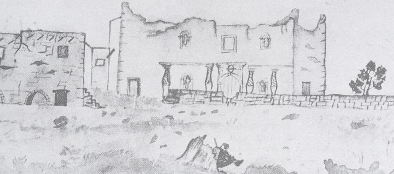 Sketch of the Alamo by Mary Ann Maverick, 1838. Published in Rena Maverick Green's Memoirs of Mary A. Maverick, 1921.