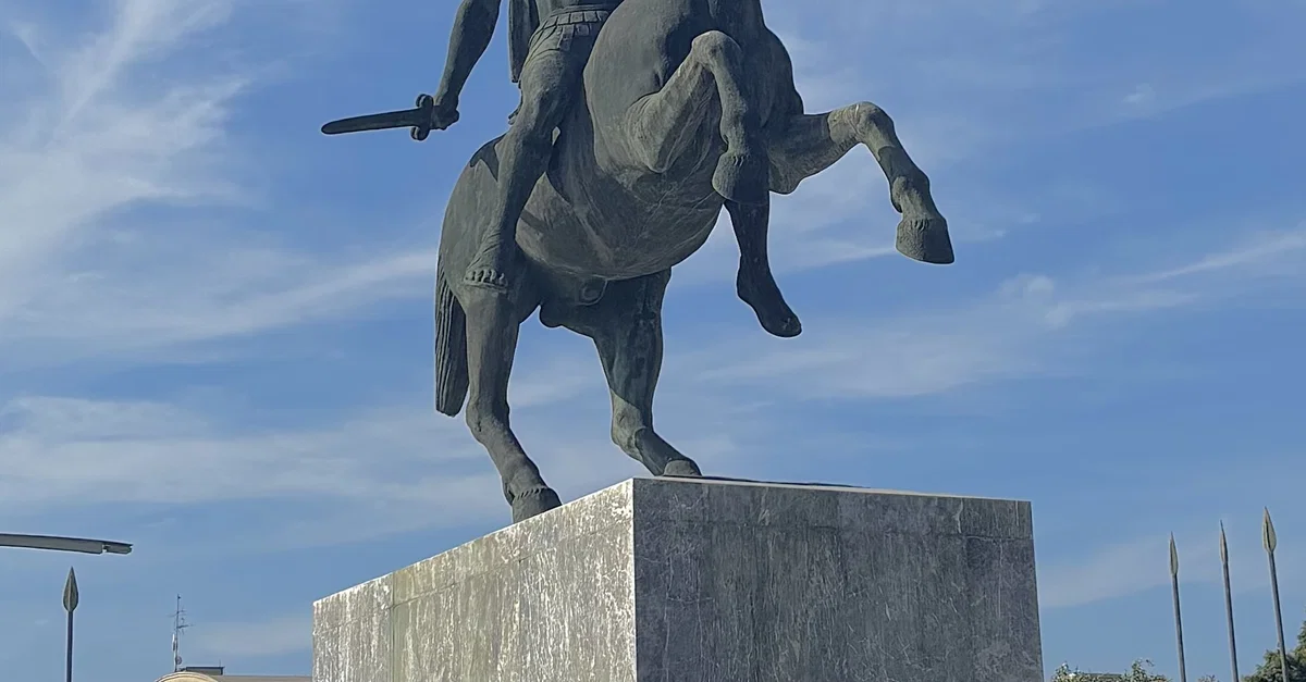 Alexander the Great on Bucephalus, bronze equestrian monument by Evangelos Moustakas, photograph by Franco R. Batista Garcia, Thessaloniki, 10 September 2025.