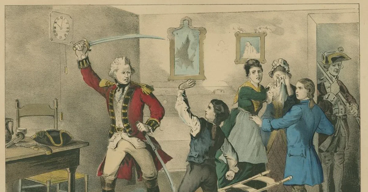 Depicted here is a young Andrew Jackson (1767-1845), current captive of the British in the American Revolution and future president of the United States, being struck by a redcoat officer after refusing to clean the man's boots. The scars left by the officer's saber would serve as a symbol of Jackson's enmity towards Britain.