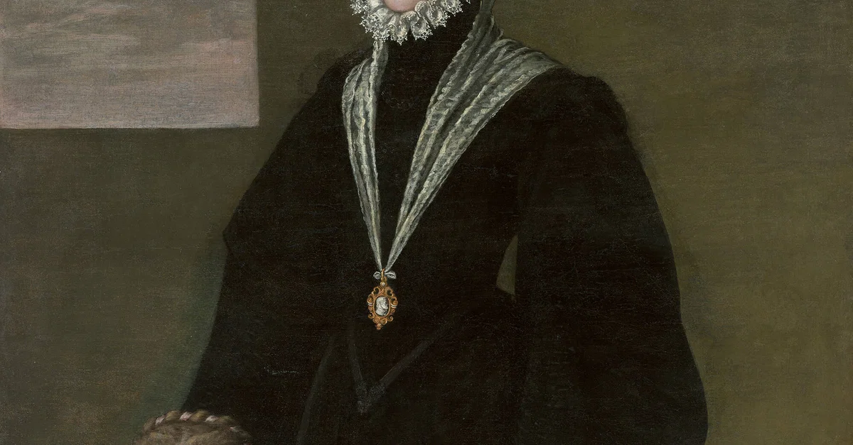 Juana of Austria (1535–1573), daughter of Emperor Charles V, married Prince Juan of Portugal and later served as the regent of Spain whislt her brother, King Phillip II, was in England. Sofonisba was a well known painter and teacher in the Spanish court and likely secured this commission through these connections.