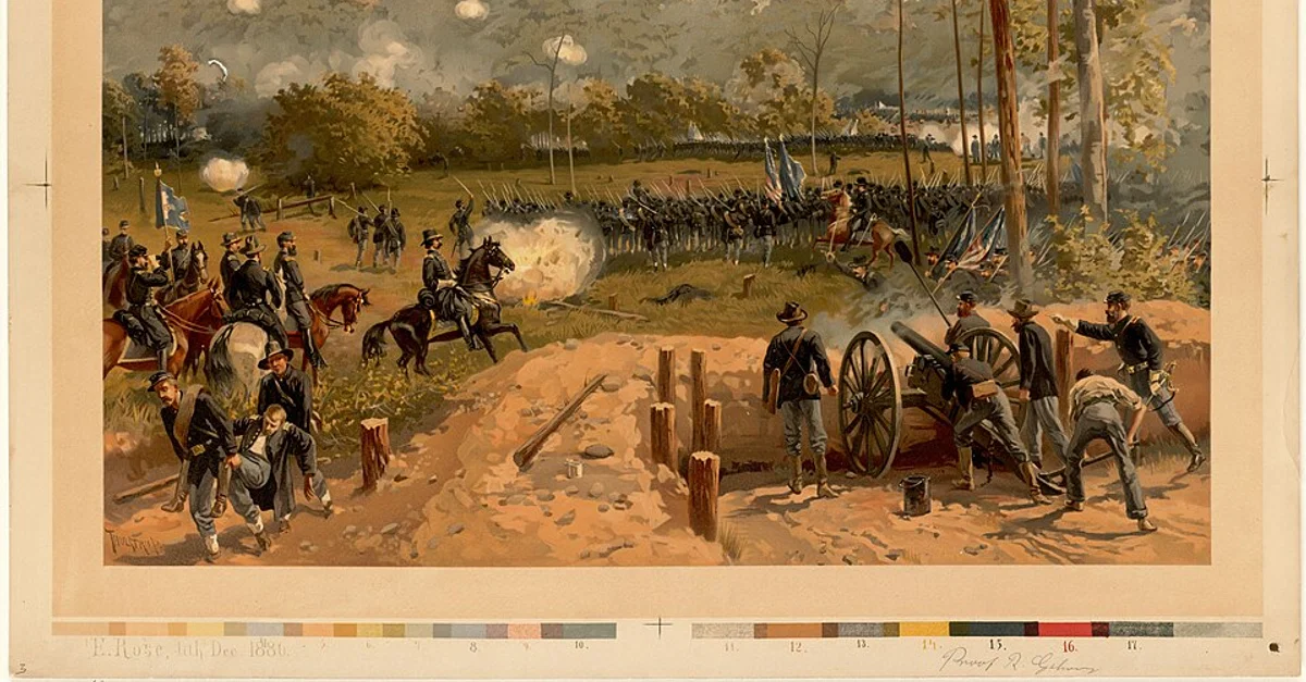 Battle of Kennesaw Mountain, lithographic print by E. Rose, from an original work of Thure de Thulstrup, and published by L. Prang & Co., 1886.