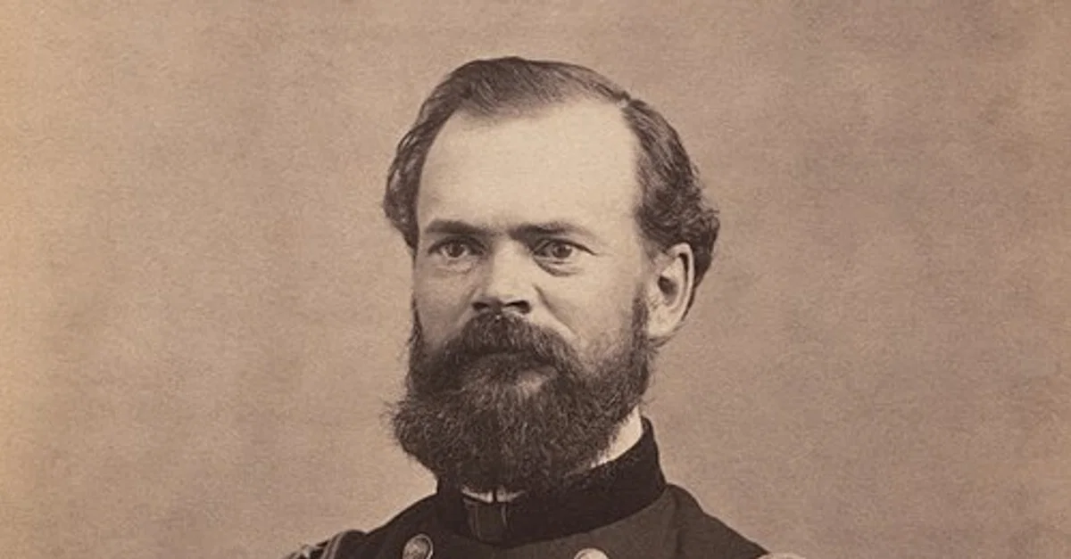 Depicted here is Major General James B. McPherson (1828-1864), a career officer in the United States Army who rose to lead the Army of the Tennessee. He was felled by Confederate gunfire at the Battle of Atlanta during the Atlanta Campaign in the American Civil War.