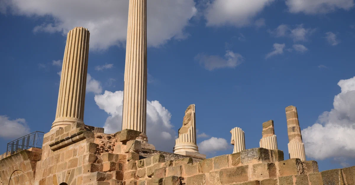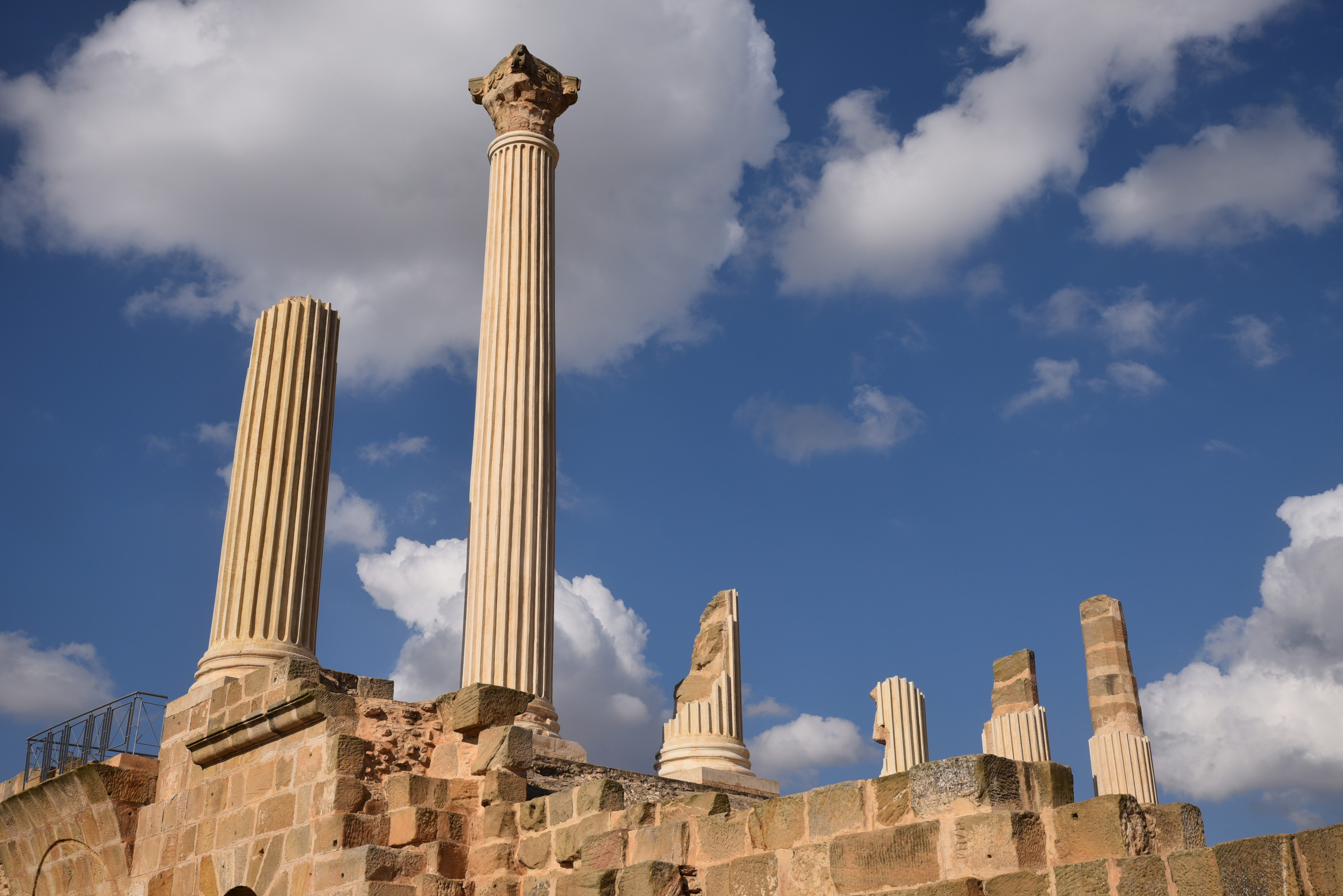 Ruined pillars at the Capitolium of Uthina, photograph by Carole Raddato, Oudhna, Tunisia, 12 February, 2023.