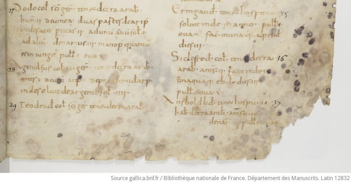 Manuscrits, Bibliothèque nationale de France. Département des. "Polyptych of Irminon, folio 2r." World History Encyclopedia, 27 Oct 2025, https://www.worldhistory.org/image/21232/polyptych-of-irminon-folio-2r/.