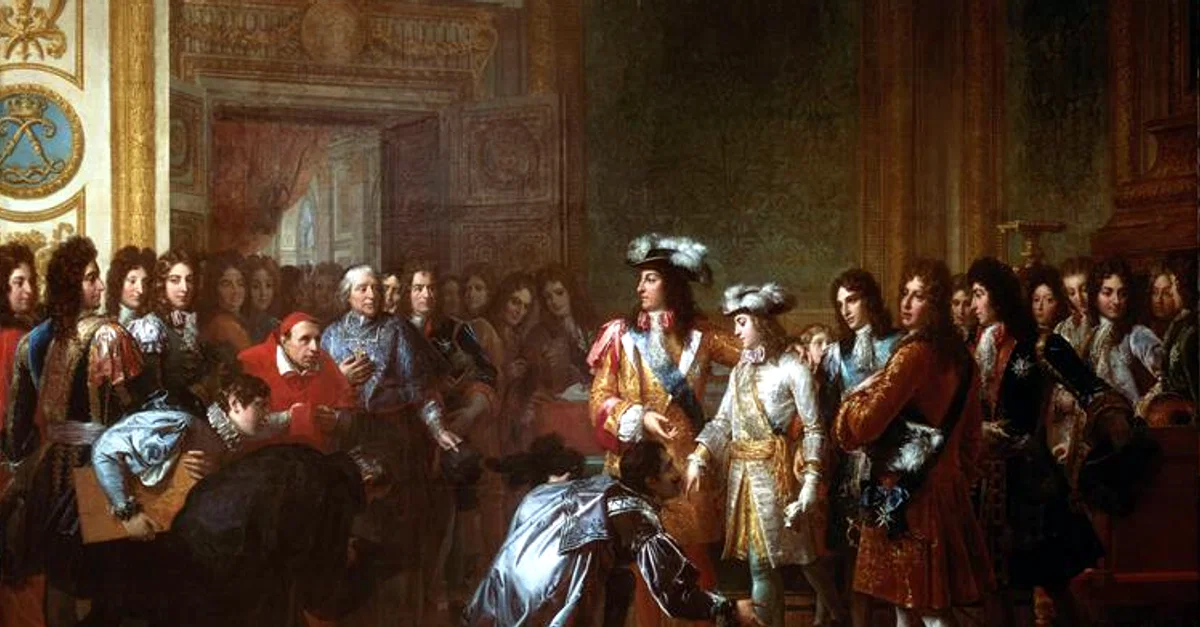 Philip of Anjou is crowned King of Spain in November 1700 (and so becomes Philip V of Spain), setting off the War of the Spanish Succession. By François Gérard, early 19th century, oil on canvas. (Château de Chambord Collection)