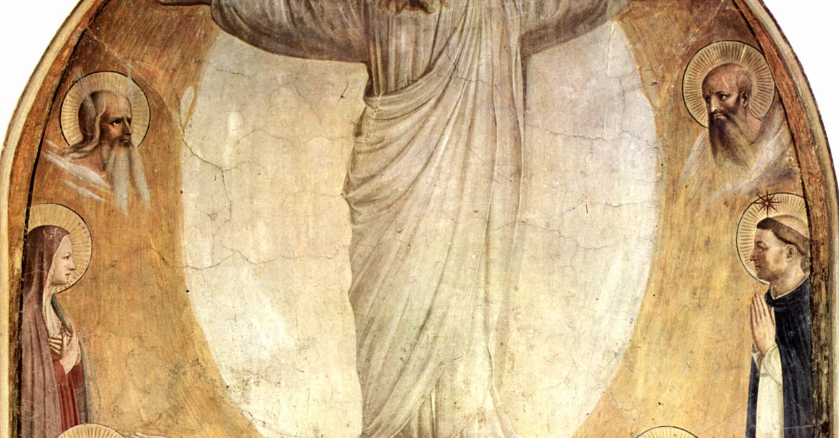 This fresco painted by Fra Angelico in Cell 6 at the Convent of San Marco in Florence, now the San Marco Museum, shows Christ standing on a rock, arms outstretched, prefiguring his own crucifixion, while also prophesying his resurrection, an example of what art historian Diane Cole Ahl calls Angelico’s "condensed, allusive narration.” Angelico painted a series of frescoes throughout the convent, in the cells of the friars, in the corridors, and on the landings, financed by the wealthy Florentine banker Cosimo de’ Medici. The frescoes at the San Marco Museum in Florence remain some of Angelico’s most important work.