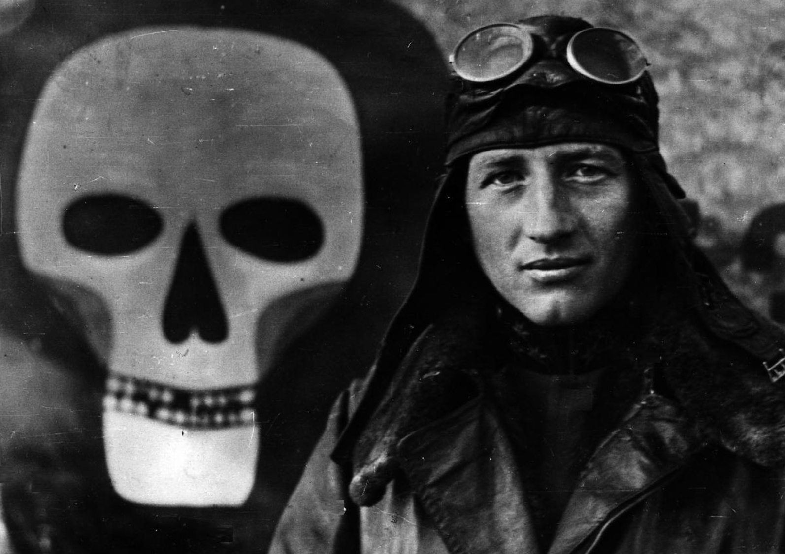 Godwin Brumowski (1889-1936) flew for the Austro-Hungarian air force. Achieving 40 victories, Brumowski was that state's top flying ace during the First World War (1914-18). He is shown next to his plane's insignia. (Imperial War Museums)