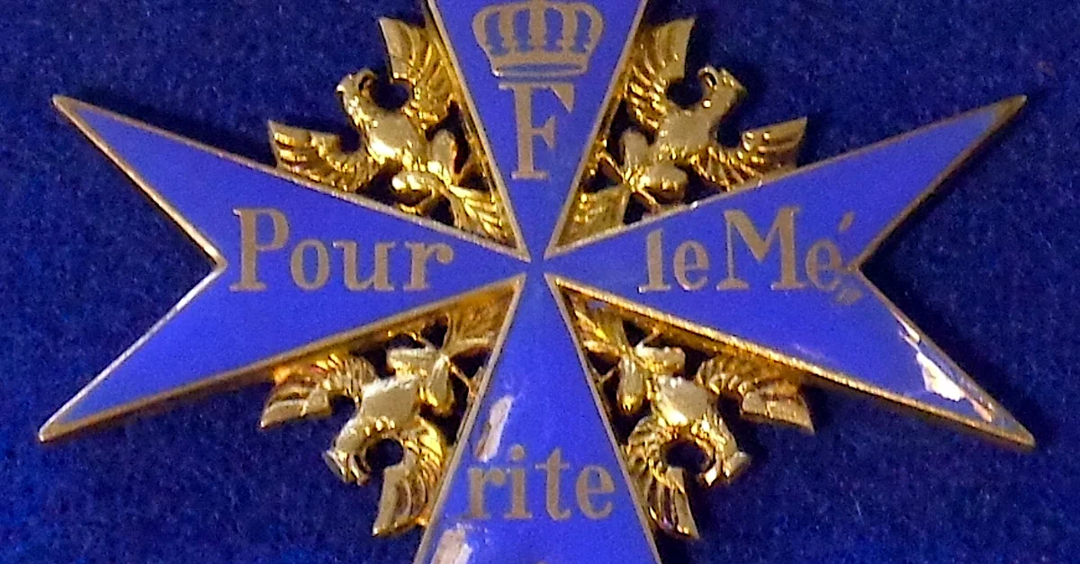 The Prussian (and then German) medal for valour Pour le Mérite, popularly known as the Blue Max during the First World War (1914-18).