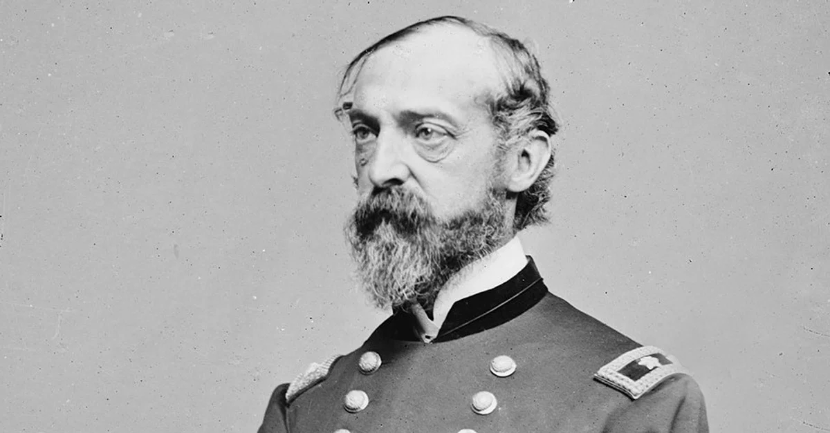 George Meade, Union general during the American Civil War, best known for his decisive victory at the Battle of Gettysburg in July 1863. Retouched version of a photograph from the Brady-Handy Photograph Collection, c. 1855-65.