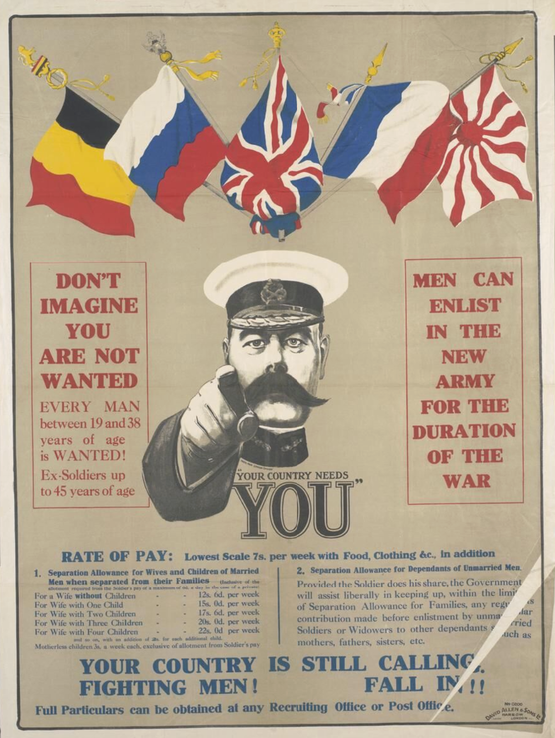 A recruitment poster urging people to join the British armed forces during the First World War (1914-18). The face on the poster is that of Herbert Kitchener, secretary of state for war (1914-16).