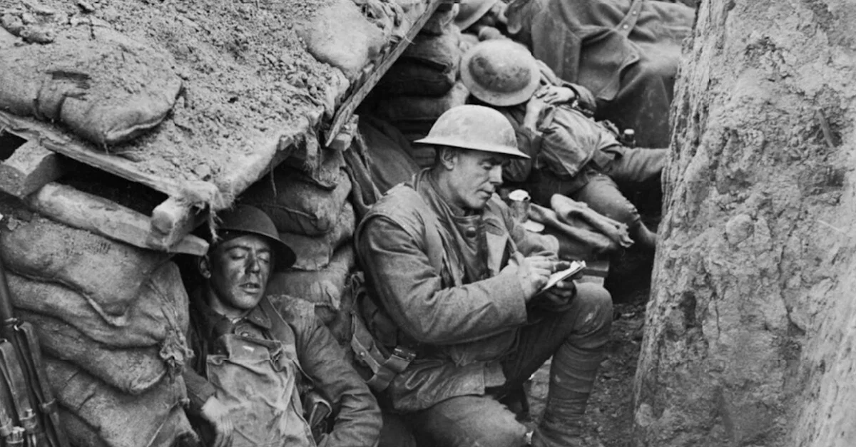 Museums, W. Rider-Rider - Imperial War. "WWI Soldier Writing in the Trenches." World History Encyclopedia, January 05, 2026. https://www.worldhistory.org/image/21506/wwi-soldier-writing-in-the-trenches/.
