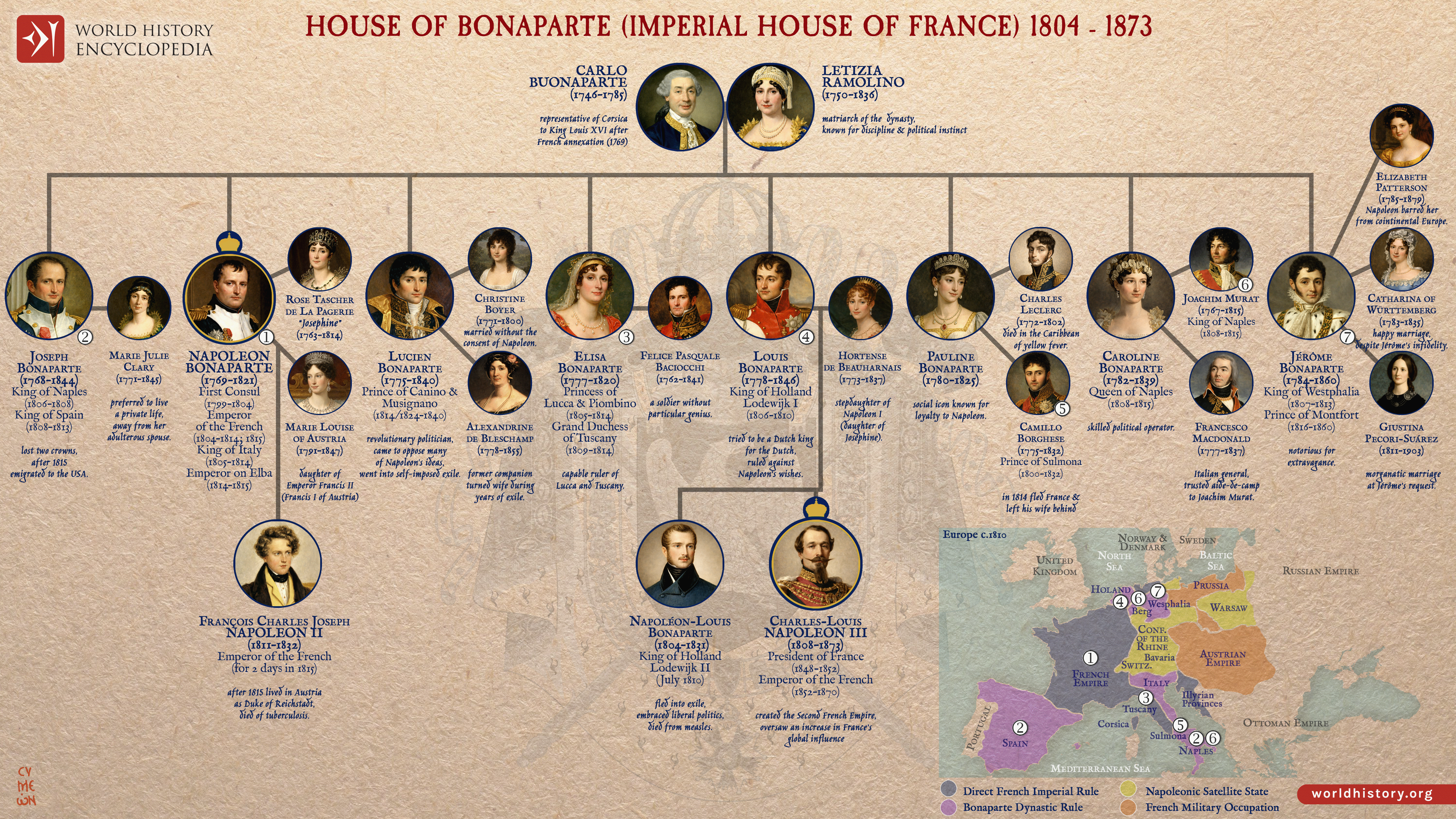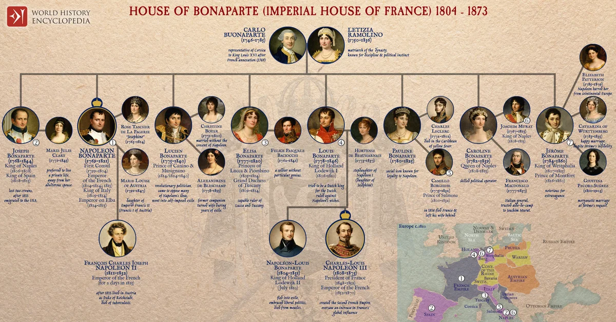 Netchev, Simeon. "House of Bonaparte (Imperial House of France) 1804 - 1873: Napoleon: Empire, Family & Power in 19th-Century." World History Encyclopedia, 20 Jan 2026, https://www.worldhistory.org/image/21539/house-of-bonaparte-imperial-house-of-france-1804/.
