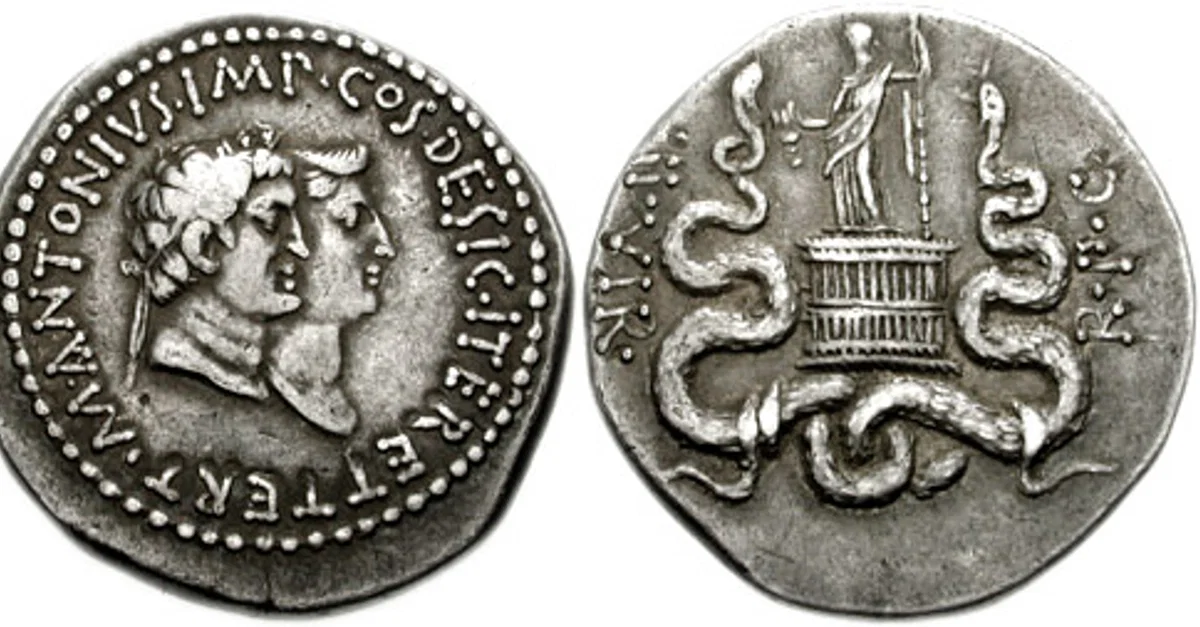 Roman coin depicting Mark Antony and Octavia Minor, c. 39 BCE.