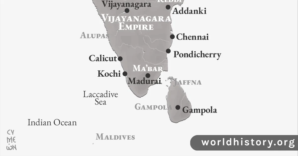 This period saw the parallel consolidation of powerful regional kingdoms, including the Bahmani Sultanate in the Deccan (founded 1347), the Vijayanagara Empire in the south (founded 1336), and a range of Rajput, eastern Gangetic, and Himalayan polities. These states competed and cooperated through warfare, diplomacy, trade, and cultural exchange, shaping a plural political landscape rather than a unified imperial system. Long-distance commerce across the Indian Ocean and overland routes continued to bind India to the wider Islamic world and East Asia, while religious institutions, both Islamic and Hindu, played central roles in governance, patronage, and social organization.