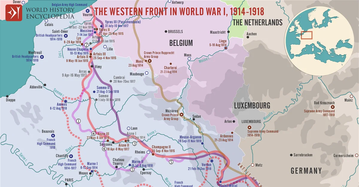 Netchev, S. (2026, February 13). Map of the Western Front in World War I, 1914-1918. World History Encyclopedia. https://www.worldhistory.org/image/21586/map-of-the-western-front-in-world-war-i-1914-1918/