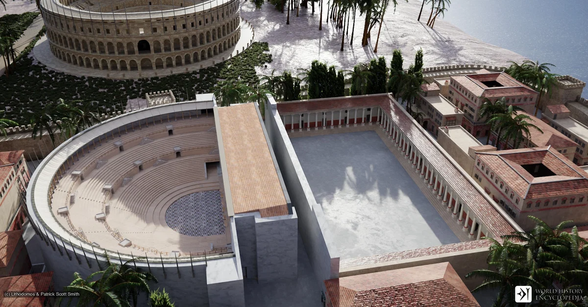 In his description of Caesarea Maritima, Flavius Josephus mentions a theater and amphitheater. With several restorations through the years, the theater, as it commands a view of the sea, is still used today. About 1 kilometer south of Herod's harbor, its location is immediately south of Herod’s Palace and was connected to it. Built of local limestone, it could hold approximately 3,500-4,000 spectators.