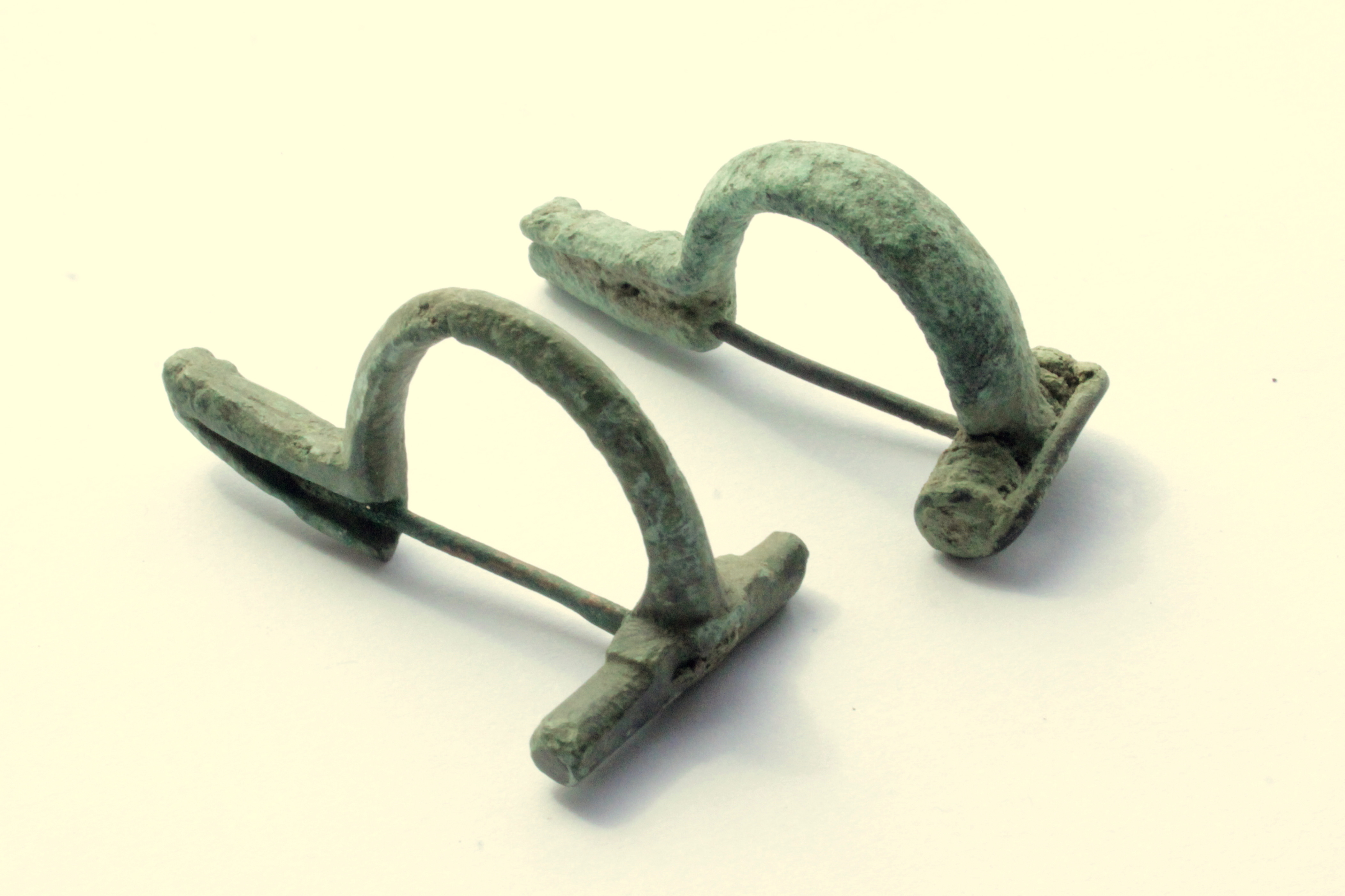 Two P-shape bronze fibulae. 2nd-3rd century CE. Provenance unknown. (private collection)