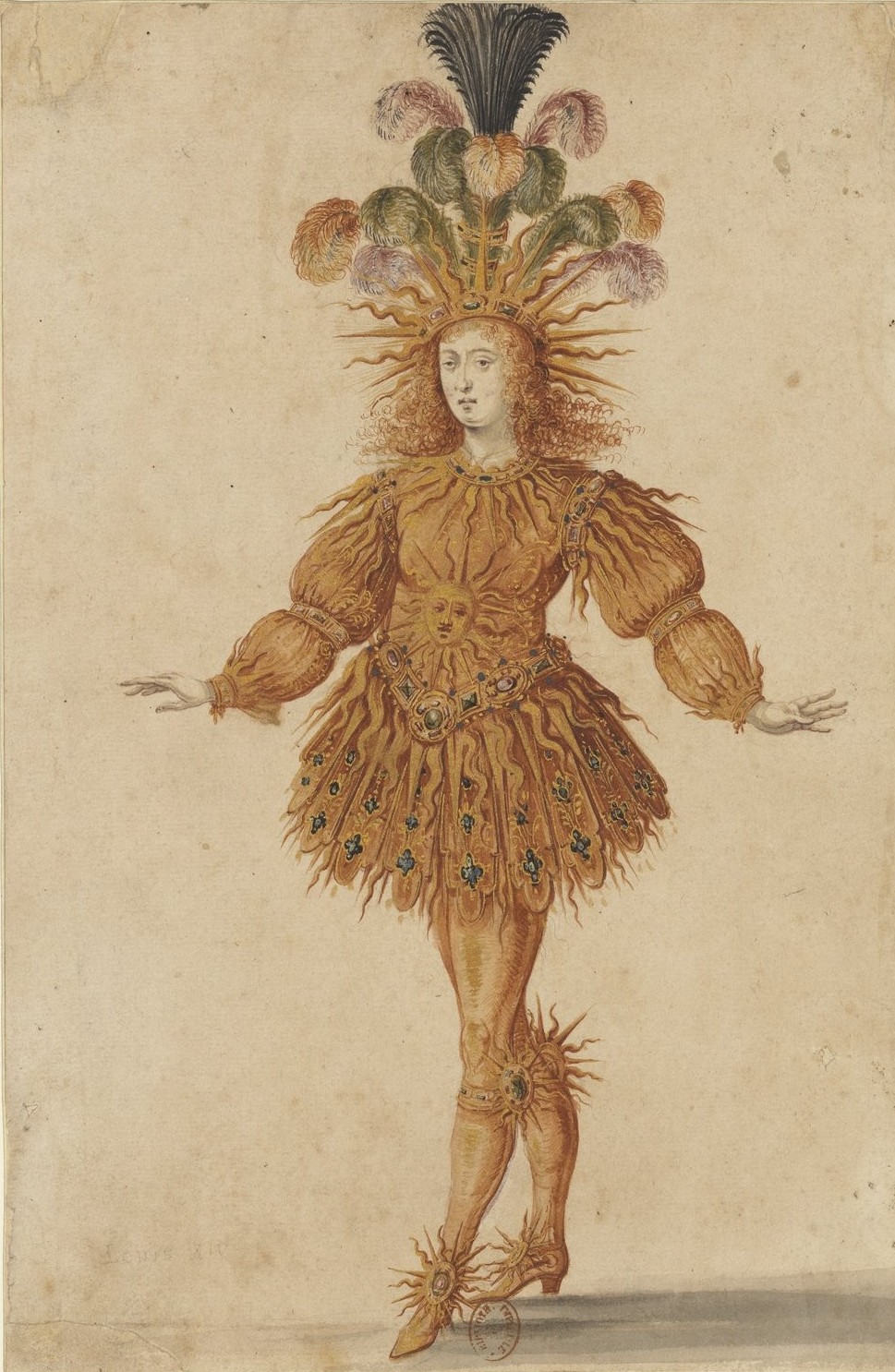 King Louis XIV dances as Apollo in the Ballet de la Nuit, drawing by Henri de Gissey, France, 1653.