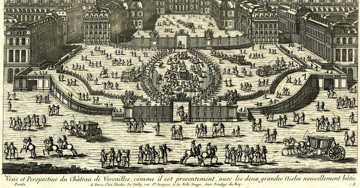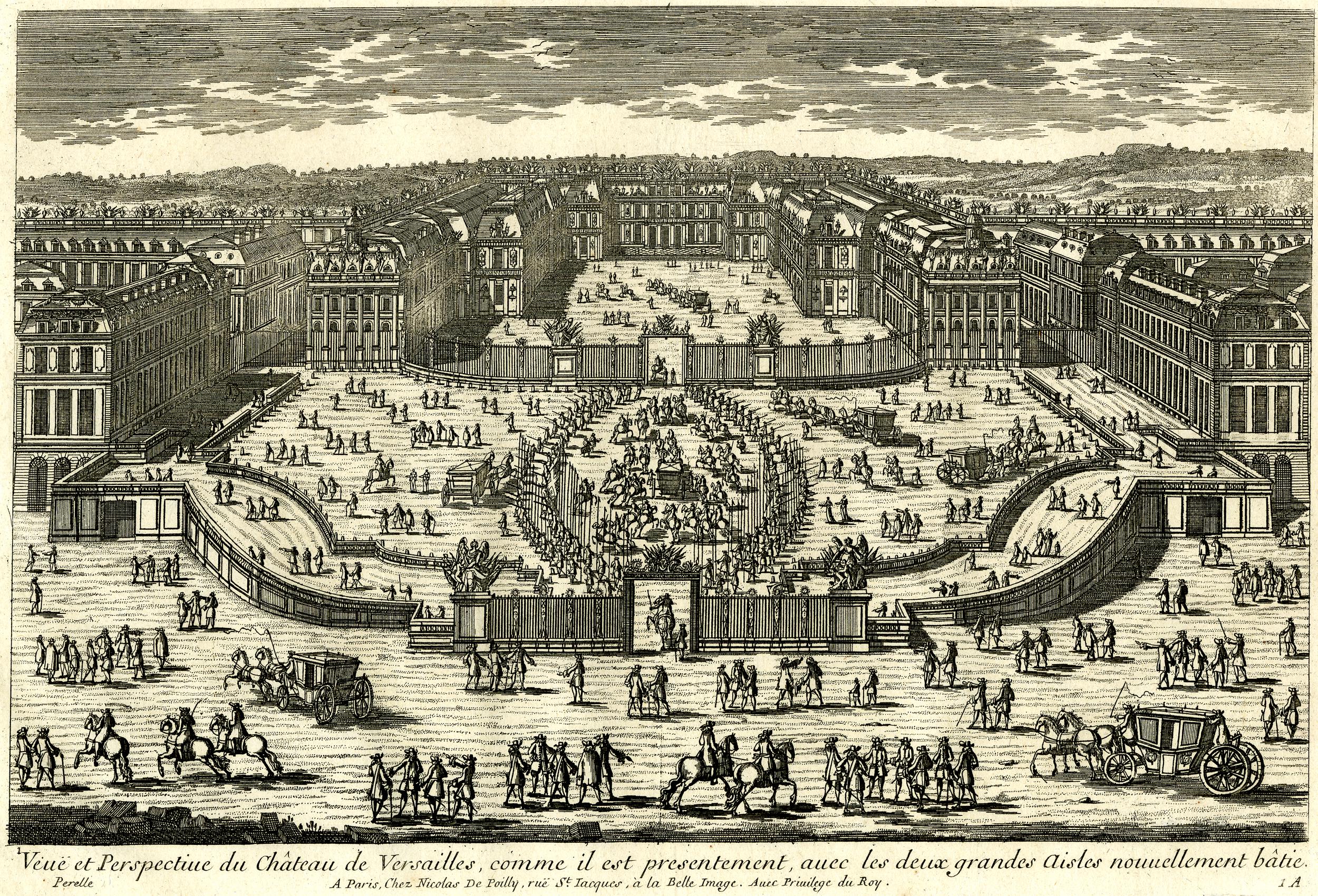 Perspective view of the Palace of Versailles, print by Gabriel Perelle, published by Nicolas de Poilly, Paris, c. 1661-1695.
