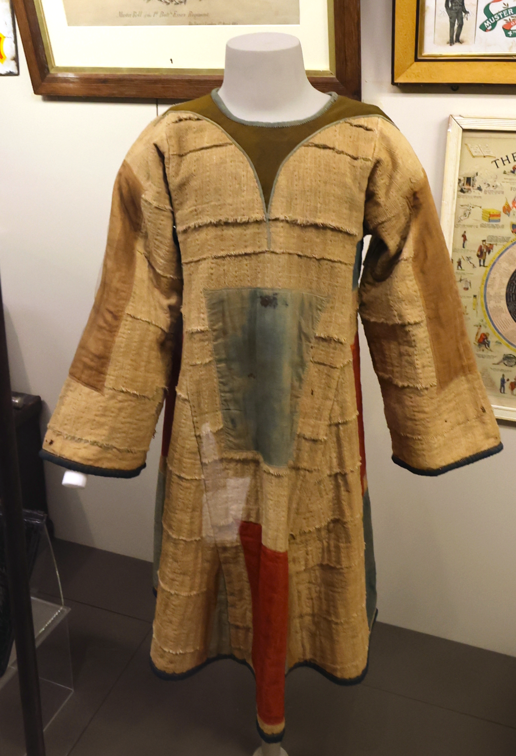 A jibba (jibbah), a garment worn by Mahdists in the Mahdist War (1881-99). The coloured patches represented a rejection of worldly goods.