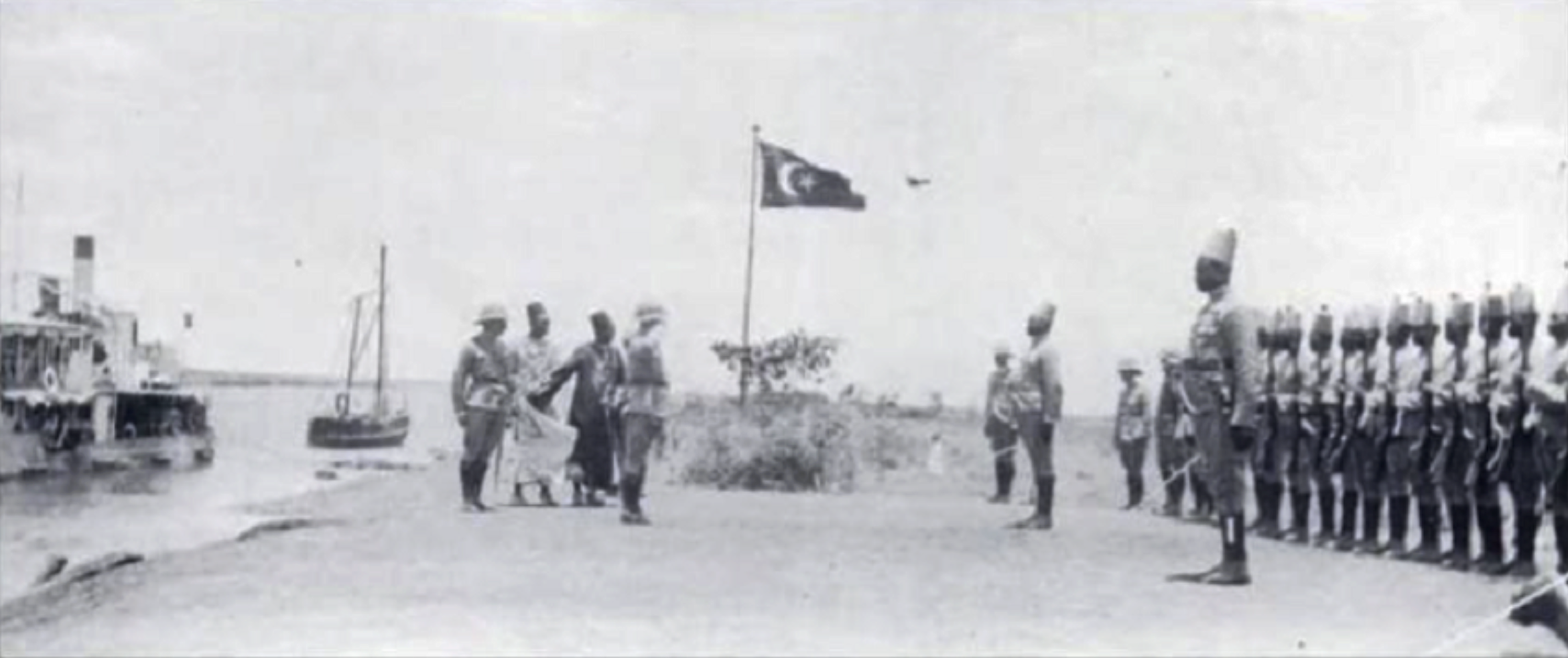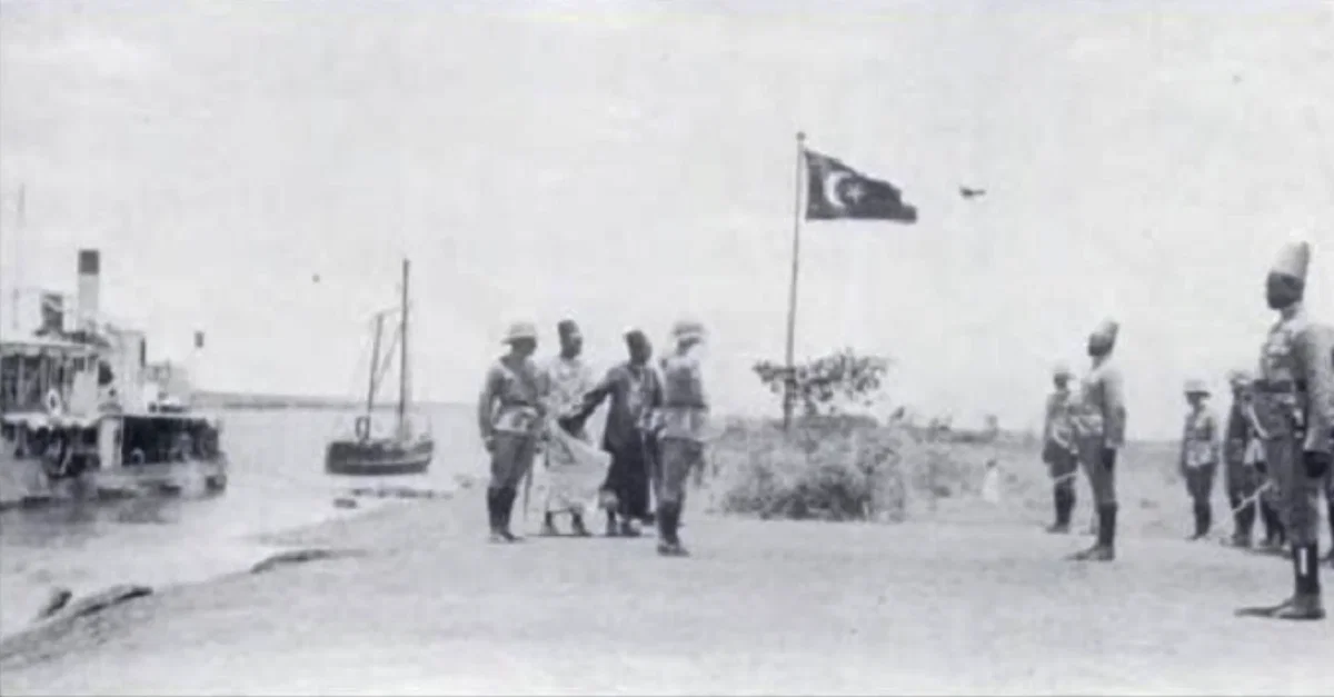 A photograph showing the arrival of the Anglo-Egyptian force led by General Herbert Kitchener at Fashoda in the Sudan. This was during the Fashoda Incident of 1898 when France and Britain almost went to war over their competing claims for control of the Upper Nile.