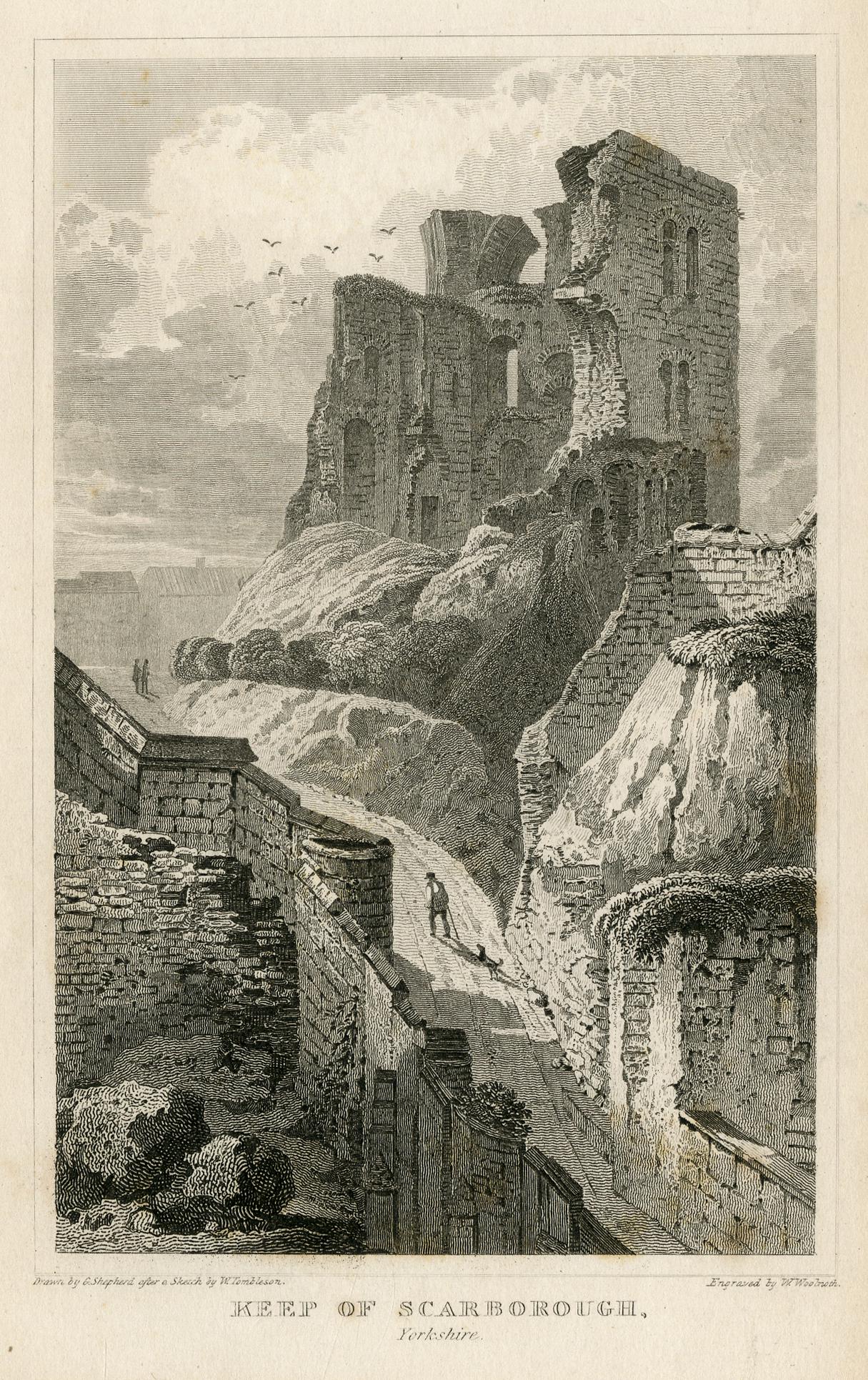 Keep of Scarborough, Yorkshire, illustration by George Shepherd after William Tombleson, c. 1806-1836.