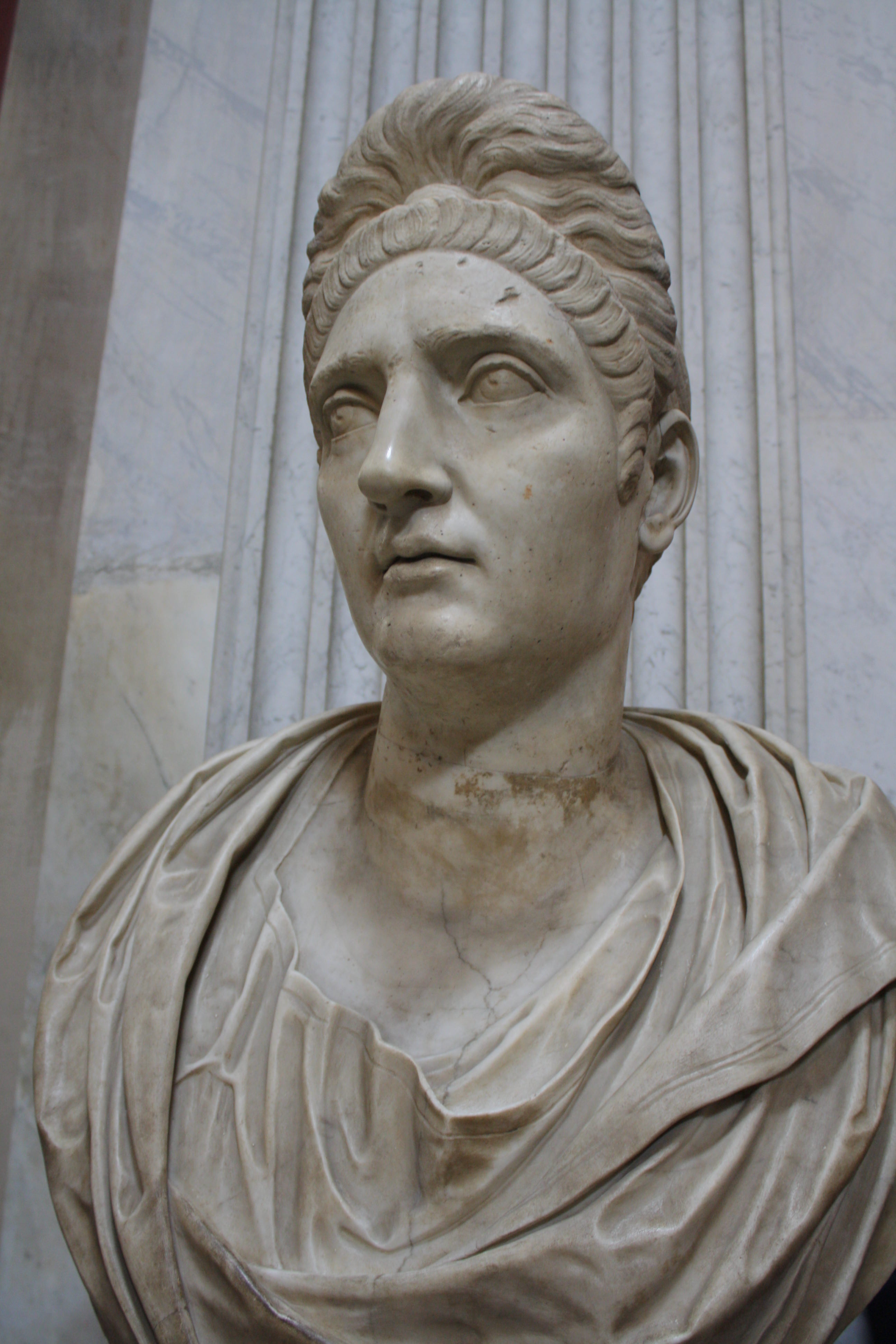 A portrait of Plotina, wife of Roman emperor Trajan. The portrait was possibly carved in 129 CE on the occasion of the empress' deification. (Vatican Museums, Rome)