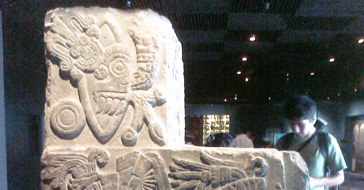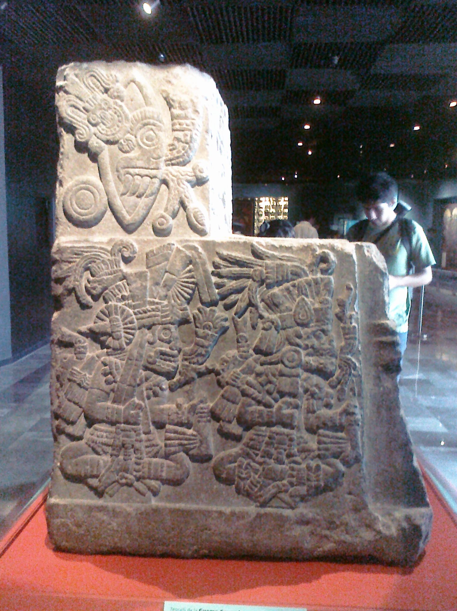 A view of the side of the Aztec Monument of Sacred War or throne of Motecuhzoma II. Carved in c. 1507 CE to commemorate the New Fire Ceremony of that year. The sides of the throne depict the four gods Tlaloc, Xochipilli, Xiuhtecuhtli, and Tlahuizcalpantecuhtli. (National Museum of Anthropology, Mexico City)