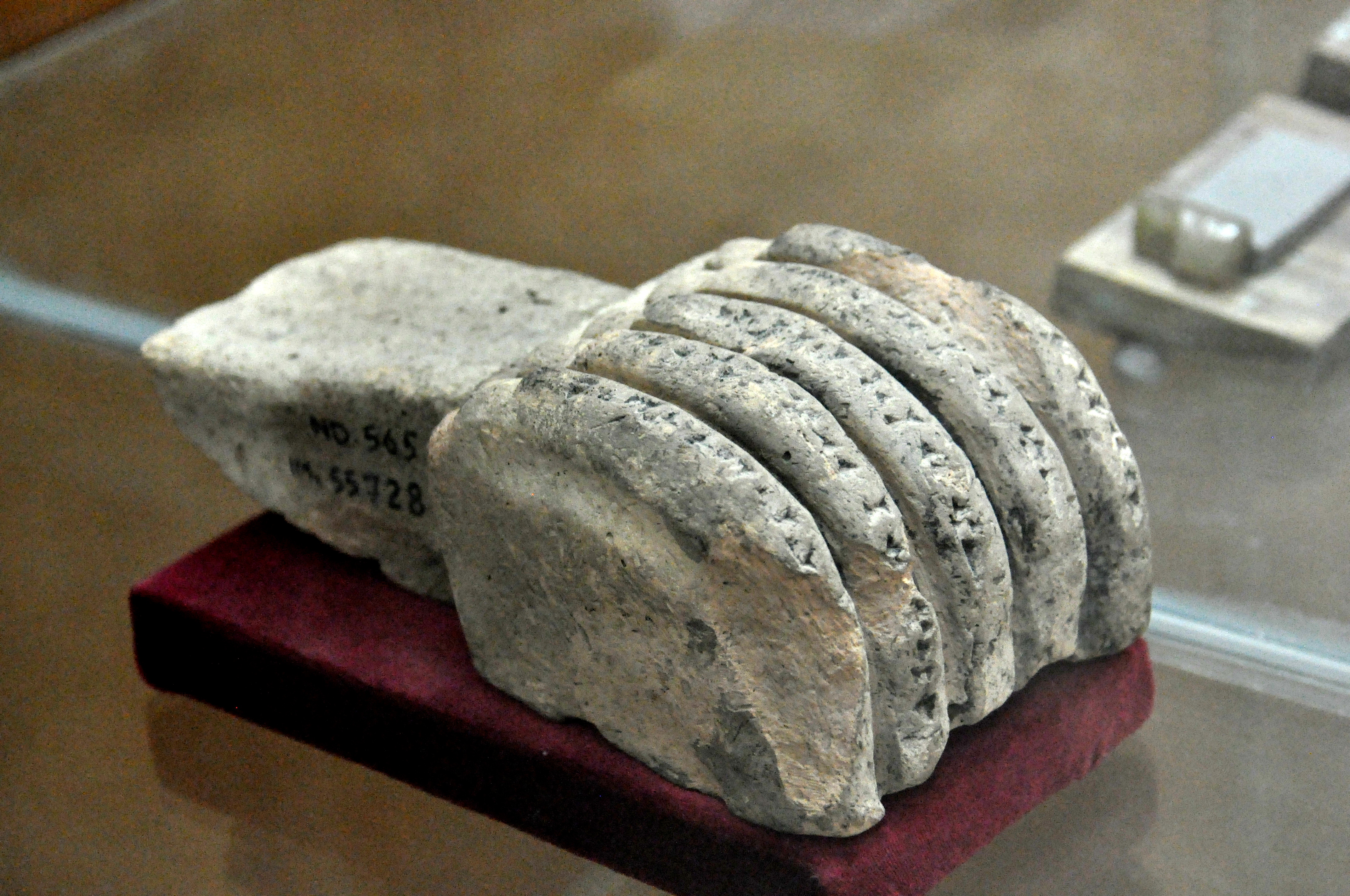 A hand of the goddess Ishtar (Inanna). This is a decorative element of architecture which was used in temples and palaces. It is inscribed with cuneiform inscriptions and was found in the palace of Ashurnasirpal II to commemorate the new foundation of God Ninurta's temple at Nimrud, the Assyrian capital. From Nimrud, Mesopotamia, reign of Ashurnasirpal II (883-859 BCE).