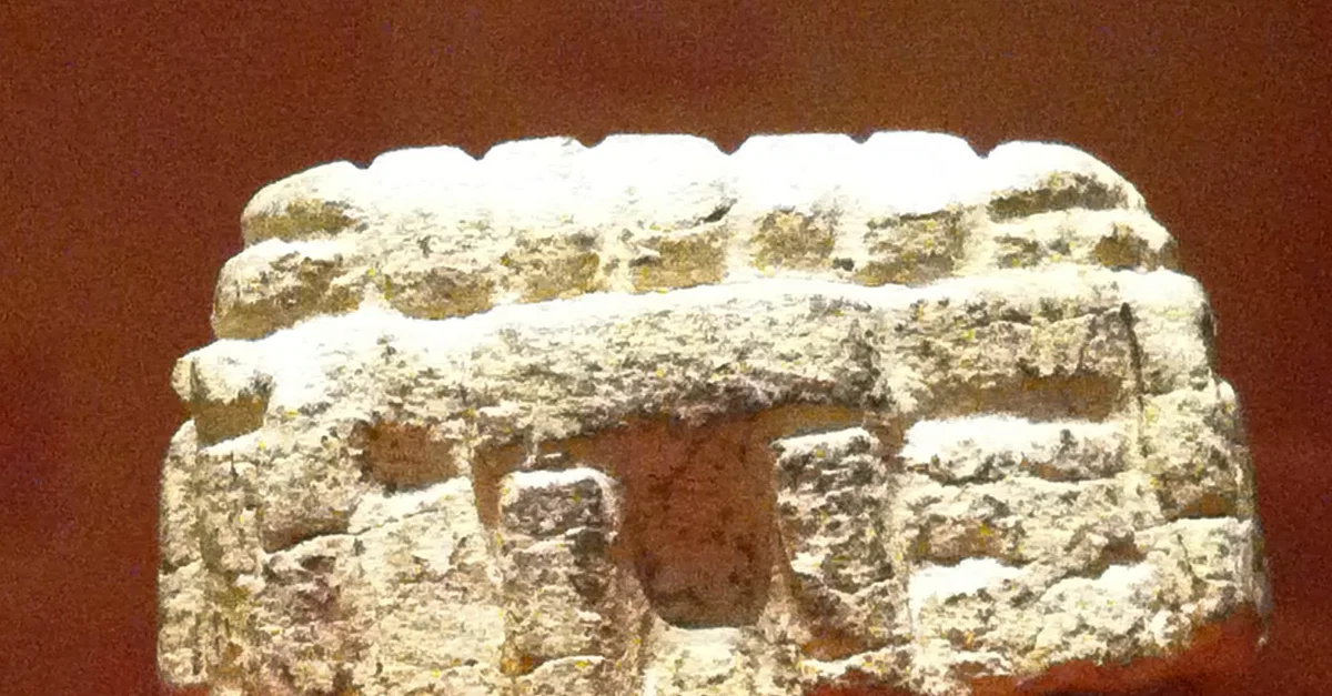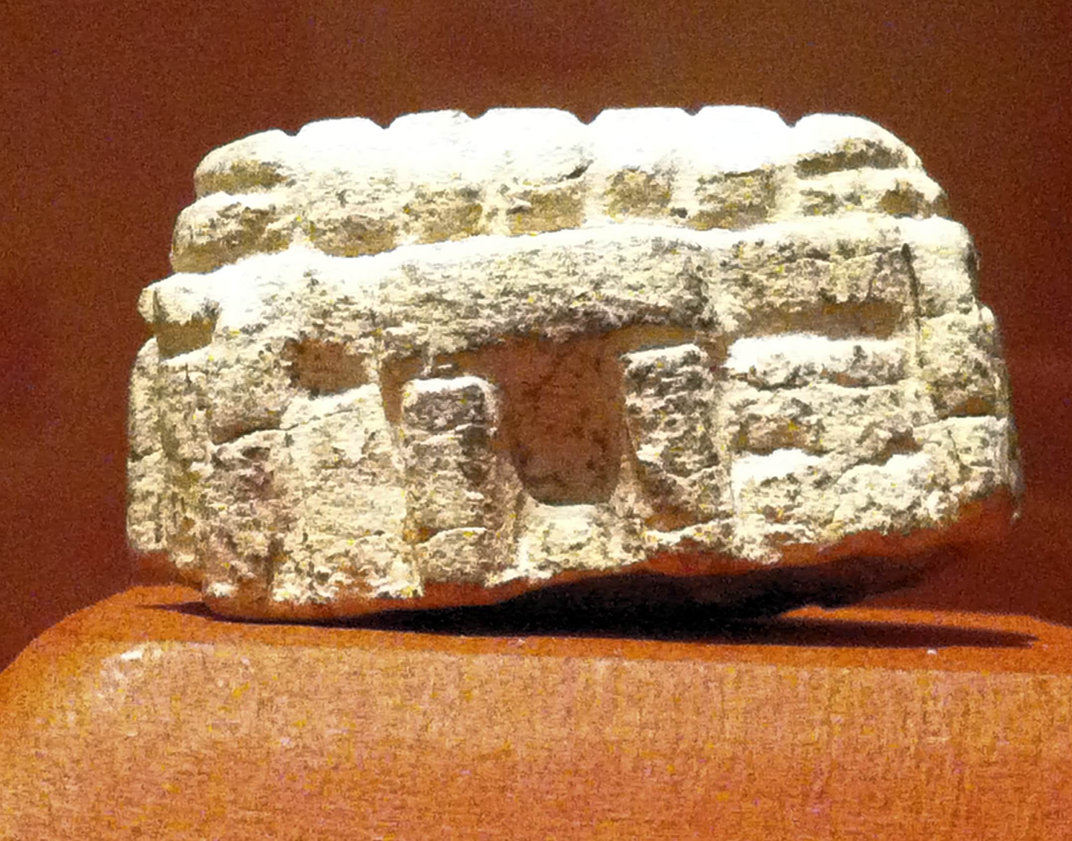 Model of a Megalithic building carved out of Globigerina Limestone. It shows a trilithon entrance and walls formed of slabs. Above these are one or two courses of horizontally laid slabs projecting inwards. The roof is apparently composed of seven horizontal slabs. 3800-3000 BCE Provenance: Discovered in 1923 during excavations of the Ta Hagrat Temple Complex, Mgarr Village, Gozo. Currently housed at the National Museum of Archaeology in Valetta, Malta.