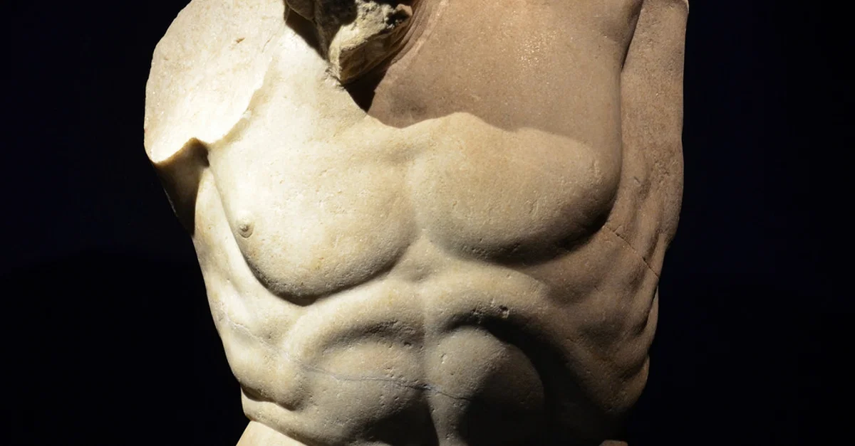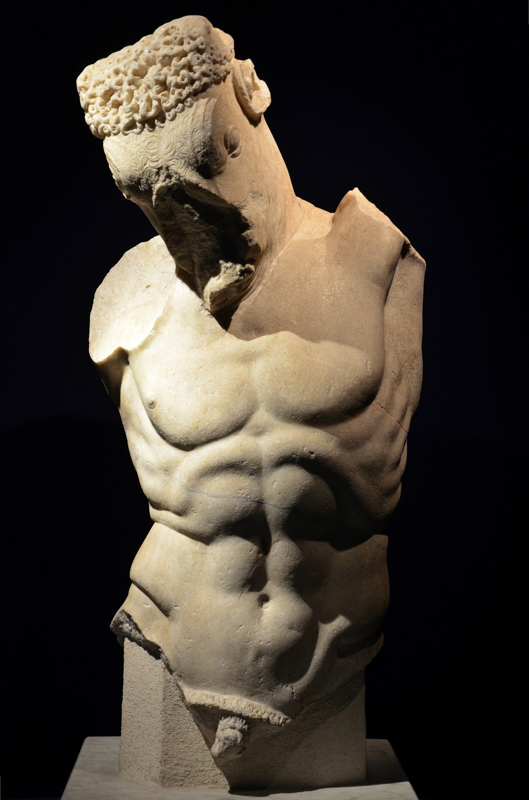Torso of the Minotaur. Late 1st-century CE Roman copy of a Greek original of around the mid-5th century BCE, hypothetically attributed to the sculptor Myron.