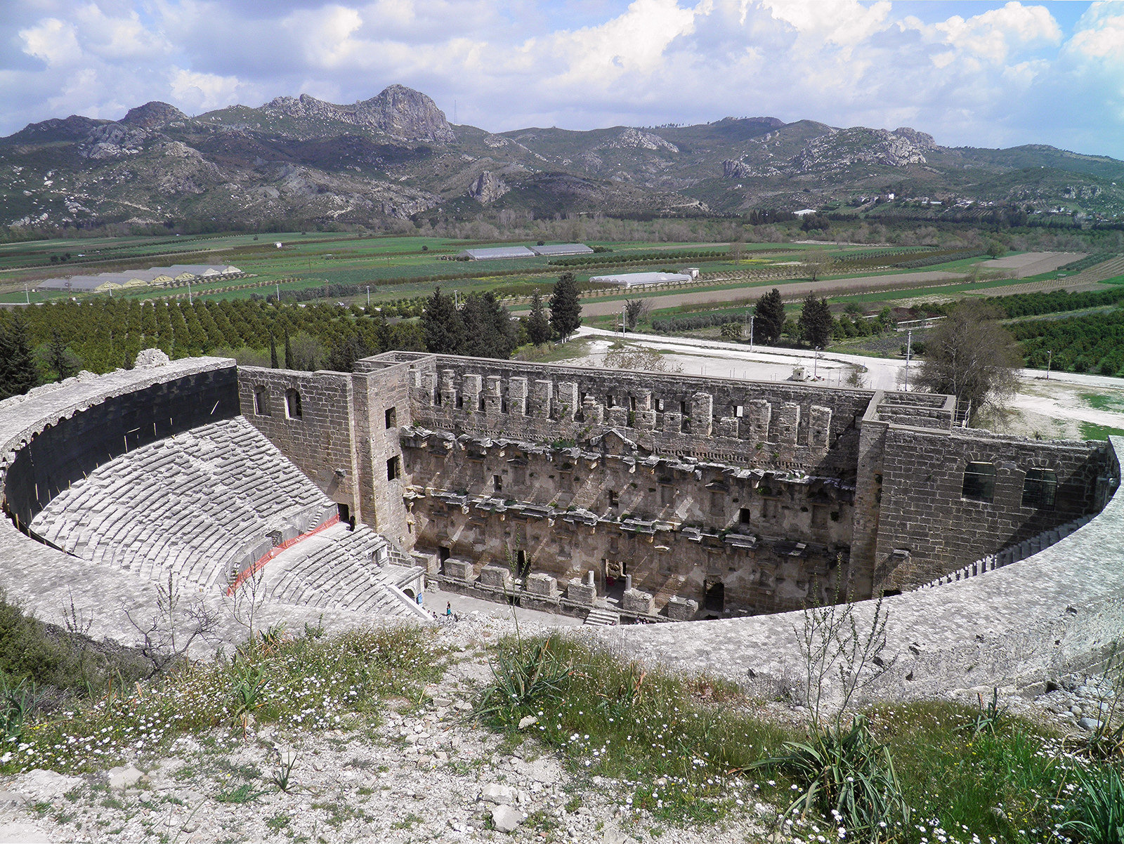 The Roman theatre of Aspendos is one of the best preserved theatres of the Roman world. The theatre was built in the period 161 - 169 CE during the reign of Marcus Aurelius. (Aspendos, Turkey)